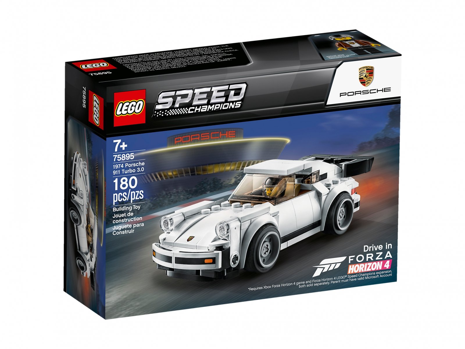 Kolekcjonerski model klasycznego Porsche 911 Turbo 3.0 z 1974 roku — do zabawy lub postawienia na półce! Budowanie modelu Porsche 911 Turbo 3.0 1974 z zestawu 75895 LEGO® Speed Champions sprawi mnóstwo frajdy każdemu miłośnikowi marki. Gotowy model można postawić na półce jako ozdobę albo urządzić wyścigi. Ten biały, kolekcjonerski model samochodu przedstawia jedną z najbardziej rozpoznawalnych sportowych maszyn. Jest tu kabina dla minifigurki ze zdejmowaną szybą i mnóstwo dodających realizmu detali, w tym kultowy spojler w kształcie „wielorybiego ogona”. W zestawie LEGO czeka także klasyczna minifigurka kierowcy Porsche 911 oraz 3 pachołki. Wszystko gotowe do zabawy w wyścigi! Dzięki pakietowi rozszerzeń LEGO Speed Champions (do nabycia osobno) fani mogą także przenieść zabawę do cyfrowego świata i pojeździć tym samochodem w grze Forza Horizon 4.