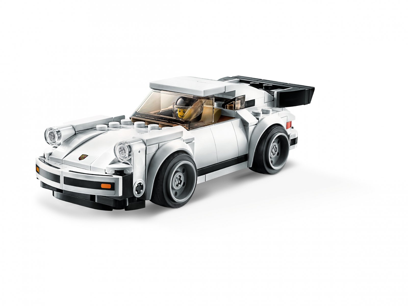 - Biały model Porsche 911 Turbo 3.0 1974 do zbudowania z klocków ma kabinę ze zdejmowaną szybą i miejscem dla minifigurki, koła z gumowymi oponami wyścigowymi i szereg realistycznych szczegółów konstrukcji, w tym typowy dla 911 Turbo tylny spojler.