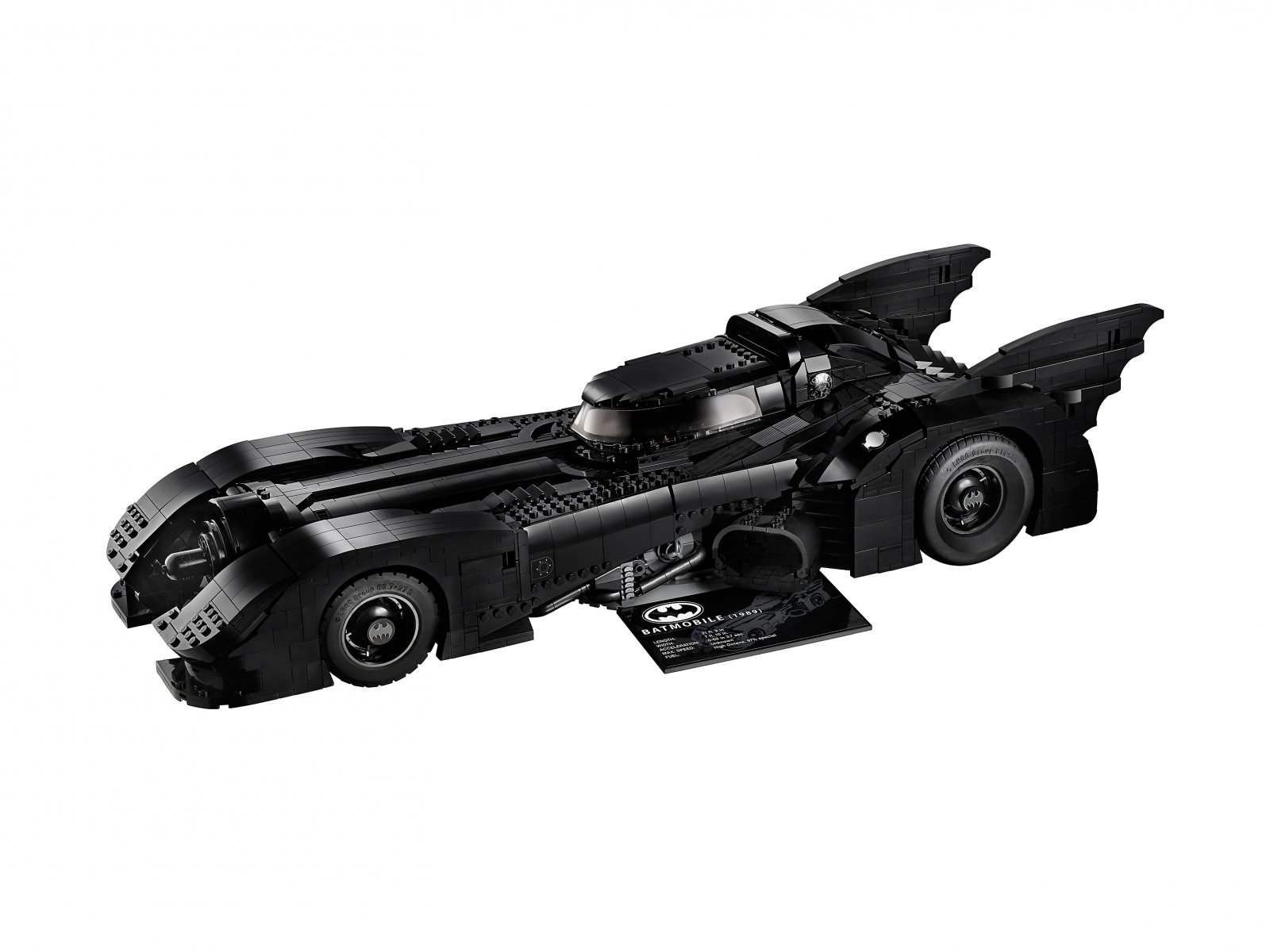- Wersja LEGO® samochodu 1989 Batmobile™ ma przesuwane drzwi do kabiny z nową zakrzywioną szybą przednią (nowość na listopad 2019 r.), w której znajdują się dwa siedzenia dla minifigurek, kierownica, drążek skrzyni biegów i naklejki przedstawiające deskę rozdzielczą. Dodatkowo pojazd wyposażony jest w dwa ukryte pod maską niestrzelające pistolety maszynowe wysuwane po obróceniu rury wydechowej, dwa dekoracyjne haki do zarzucania, felgi z logo Batmana, specjalnie wyprodukowane opony na przednie koła, skrzydła Batmana oraz inne kultowe detale.