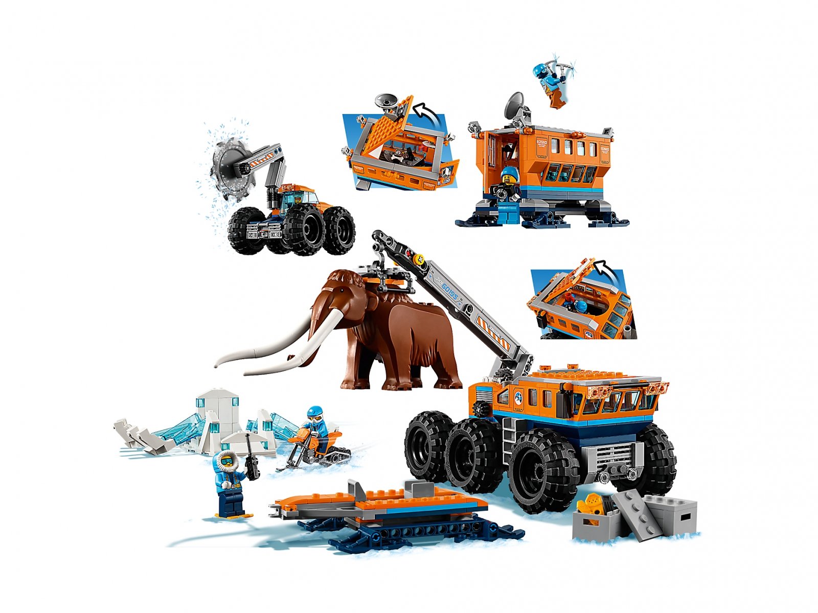Zbadaj olbrzymie znalezisko w zestawie LEGO® City 60195 Arktyczna baza mobilna! Znajdziesz w nim dźwig z ruchomym wysięgnikiem, hakiem, platformą i przyczepą oraz mobilne laboratorium z radarem i otwieranymi drzwiami. W zestawie jest także pojazd z obrotową piłą na ruchomym wysięgniku, skuter śnieżny oraz duża bryła lodu z zamarzniętym mamutem. Ten zestaw z serii Ekspedycja badaczy Arktyki zawiera sześć minifigurek badaczy LEGO i figurkę mamuta.