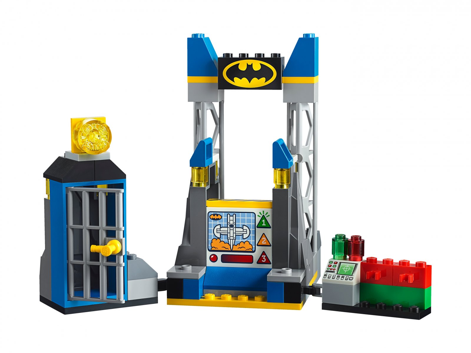 - Zestaw zawiera Jaskinię Batmana z ekranem i miejscem do zadokowania Batwinga. Jest w niej także niewielka cela z otwieranymi drzwiami, centrum kontroli oraz miejsce na miotacz haka do zarzucania i Batarang, który można zamocować w jaskini.