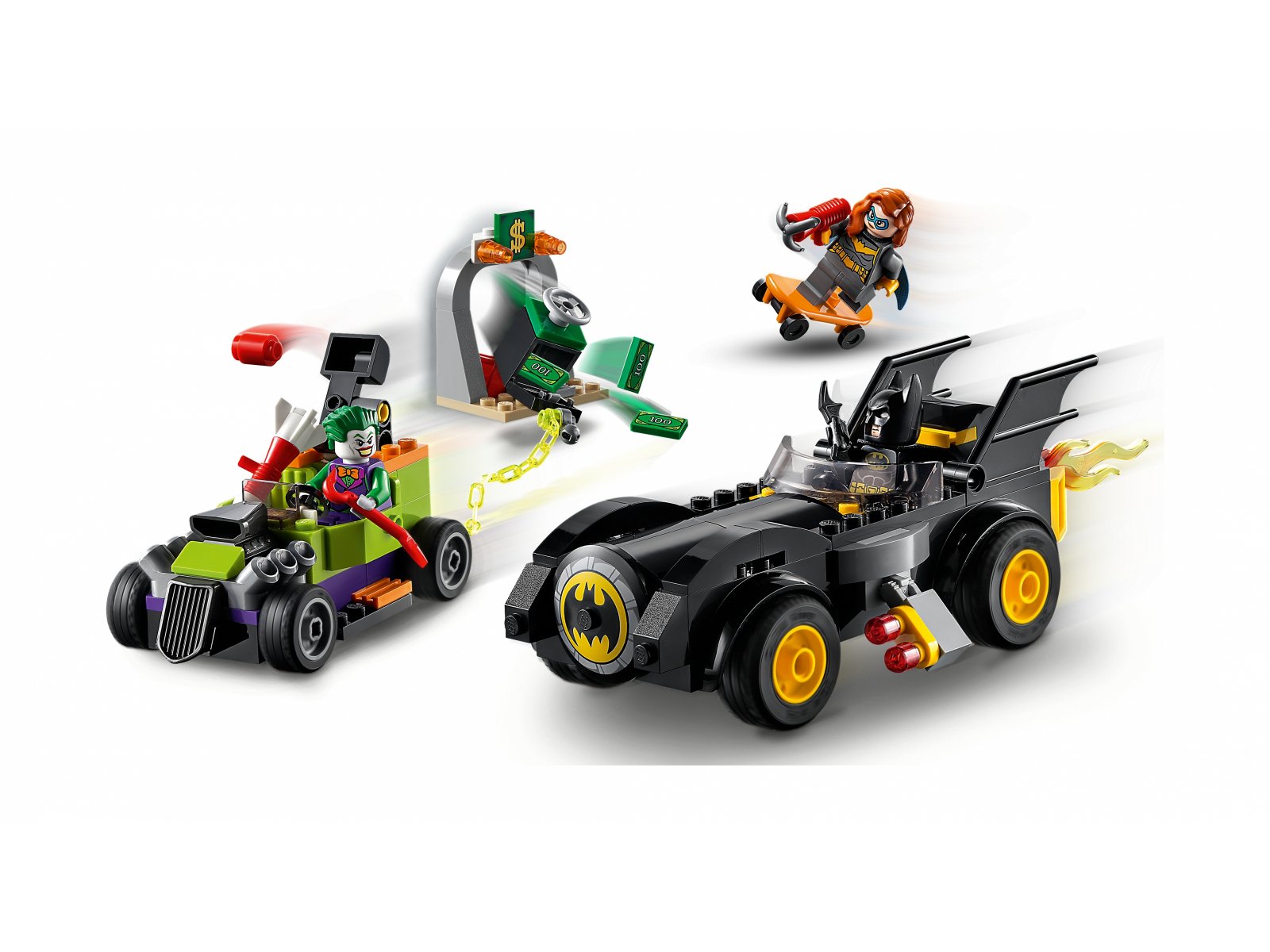 - W komplecie minifigurki Batmana™, Batgirl™ i Jokera™, Batmobil™ do zbudowania z klocków, zwariowany hot rod oraz sporo innych autentycznych elementów.