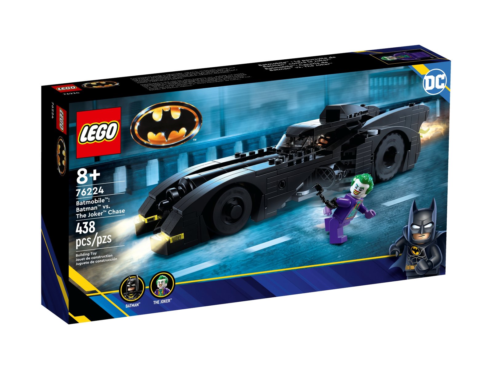 Ten zestaw z Batmobilem przypomina akcję i emocje z klasycznego filmu z 1989 roku. Podnoszony dach zapewnia dostęp do kokpitu pojazdu z miejscem na minifigurkę. Gdy dzieci przekręcą dźwignię z boku samochodu, uniosą się dwa wbudowane miotacze. Płomień przymocowany do rury wydechowej obraca się, gdy Batmobil się porusza, a otwierany bagażnik zapewnia miejsce do przechowywania dołączonego batarangu™, ostrza harpuna i kajdanek. W zestawie są dwie minifigurki — Batman i Joker — oraz akcesoria, takie jak hełm i peleryna. Dodatkową cyfrową zabawę zapewni intuicyjna aplikacja LEGO Builder, w której konstruktorzy mogą powiększać i obracać modele w 3D, a także śledzić swoje postępy.