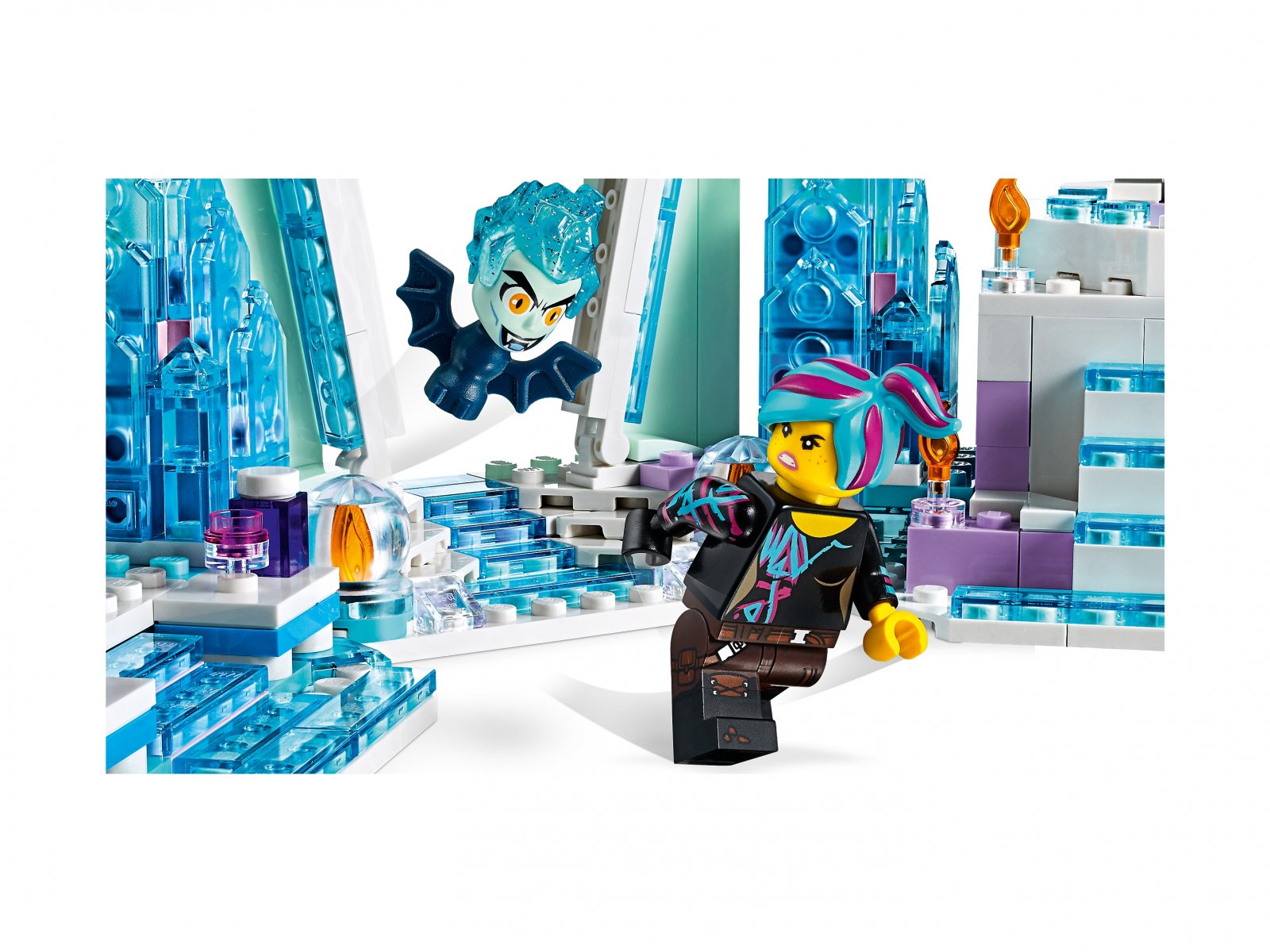 - Wszystkie minifigurki, minilaleczka i figurki zbudowane z klocków to nowości na maj 2019 r. Minifigurka rozjaśnionej Żylety ma niebiesko-różowe włosy, a Kicia spokojna ma nowy wyraz twarzy.