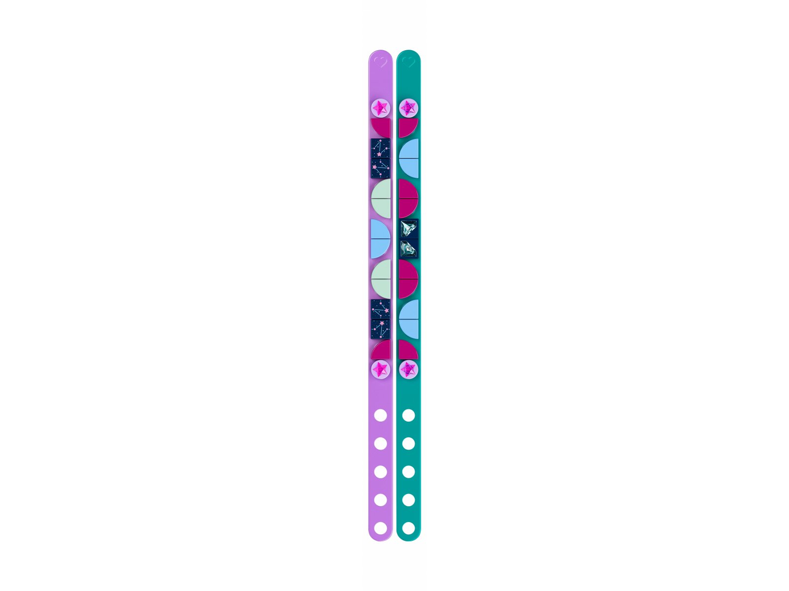Fani magii, tajemnic i gwiazd będą się wspaniale bawić przy projektowaniu bransoletek z zestawu LEGO® DOTS Bransoletki z gwiazdami (41934)! Kreatywna zabawka zawiera dwie regulowane, smukłe opaski w kolorach morskim i fioletowym, które pasują na każdy nadgarstek, a do tego 32 kolorowe płytki, wśród których są także specjalne okrągłe płytki z opalizującymi gwiazdkami oraz płytki z udekorowane mapą nieba. Bransoletki są łatwe do ukończenia, więc dzieci mogą po prostu oddać się ich personalizacji i dopasowaniu do własnego stroju lub humoru.