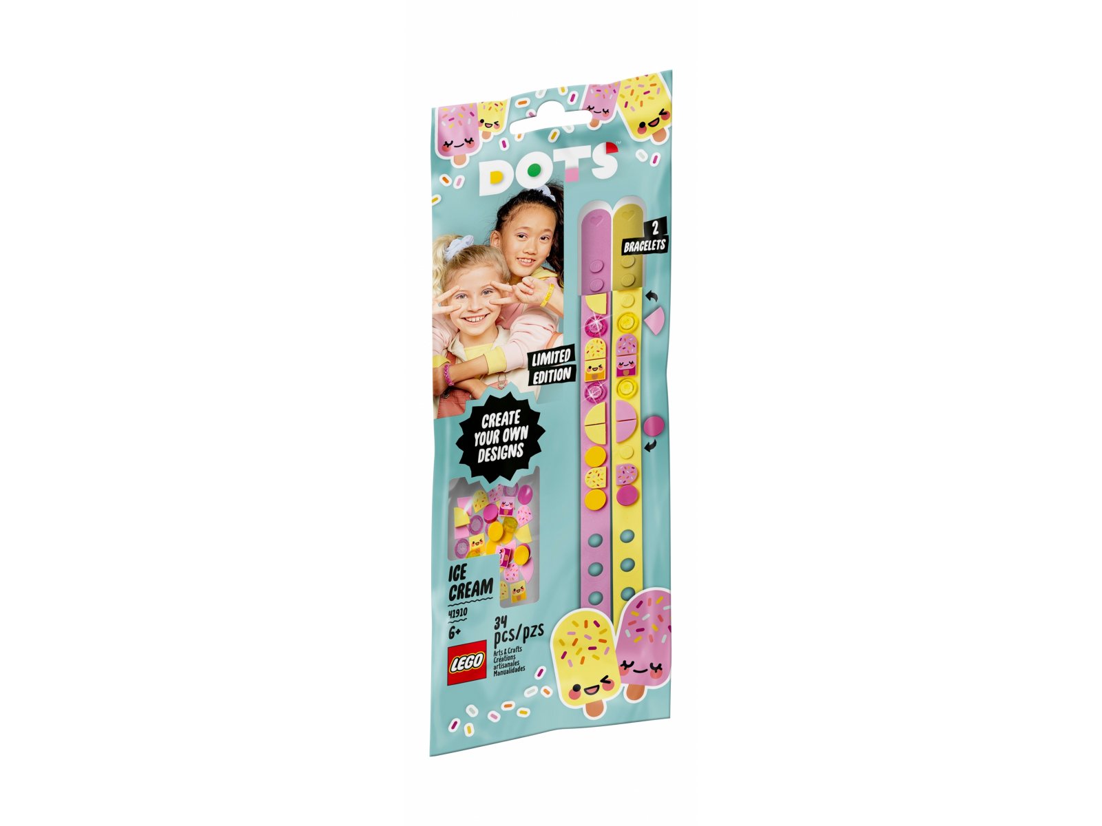 - Podaruj dziecku zestaw z limitowanej edycji LEGO® DOTS Bransoletka z lodami dla przyjaciół (41910), który zawiera dwie regulowane pojedyncze opaski oraz 32 kolorowe płytki, by mogło zrobić unikalną bransoletkę przyjaźni!