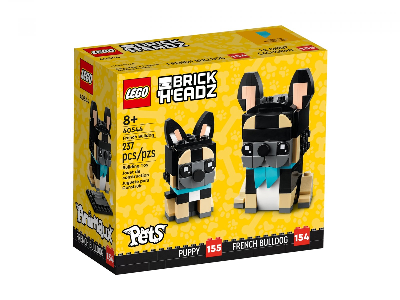 - Buldog francuski (40544) i szczeniak w stylu LEGO® BrickHeadz™ — dwa modele do zbudowania i zabawy dla dzieci w wieku od ośmiu lat