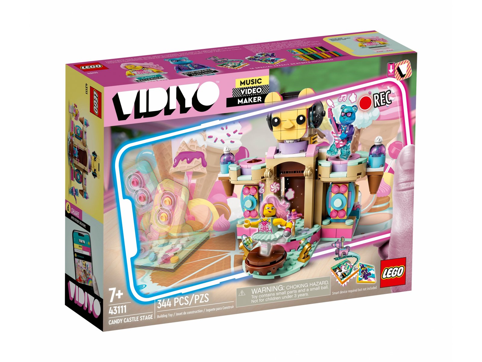 Pozwól dzieciom przenieść się do świata, w którym mogą nagrywać własne teledyski z muzyką pop i w nich występować — pomoże im w tym zestaw LEGO® VIDIYO™ Candy Castle Stage (43111). Pobierz darmową aplikację, aby zeskanować minifigurki baletnicy oraz niedźwiedzia i zobaczyć, jak postacie zachowują się na scenie. Zeskanuj model i patrz, jak zmienia się w scenę, którą można wykorzystać w teledyskach. Dzieci będą zachwycone możliwością podejmowania wyzwań, tworzenia własnych teledysków i udostępniania ich w bezpiecznym środowisku.