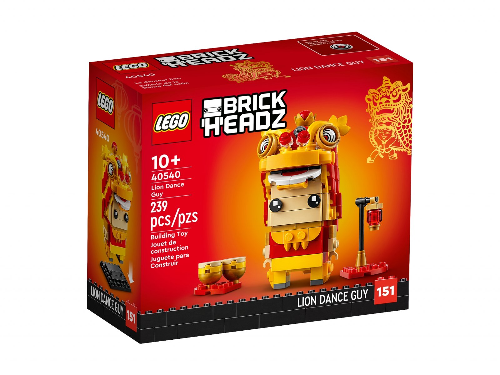 - Chłopak tańczący taniec lwa (40540) w stylu LEGO® BrickHeadz™ — inspirowany tradycyjnym chińskim tańcem lwa model konstrukcyjny w sam raz do zabawy z okazji chińskiego Nowego Roku