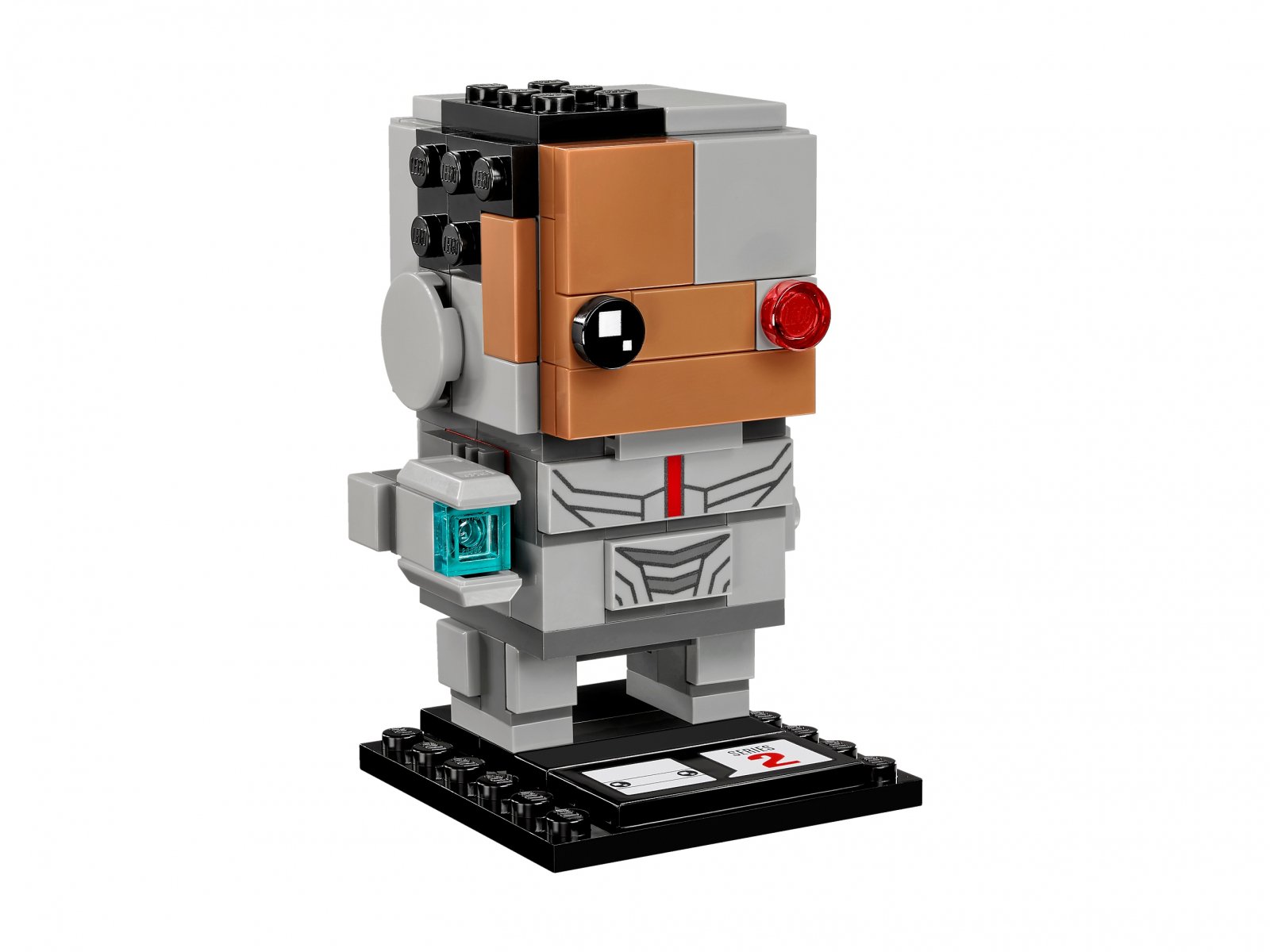 - Figurka Cyborga™ z klocków LEGO® BrickHeadz ma realistyczne detale, które wyglądają zupełnie jak w przebojowym filmie Liga Sprawiedliwości, w tym podczerwone oko, cybernetyczną maskę na twarz, srebrny pancerz, działko zamiast ramienia i przezroczystą, niebieską błyskawicę z ładunkiem energii.