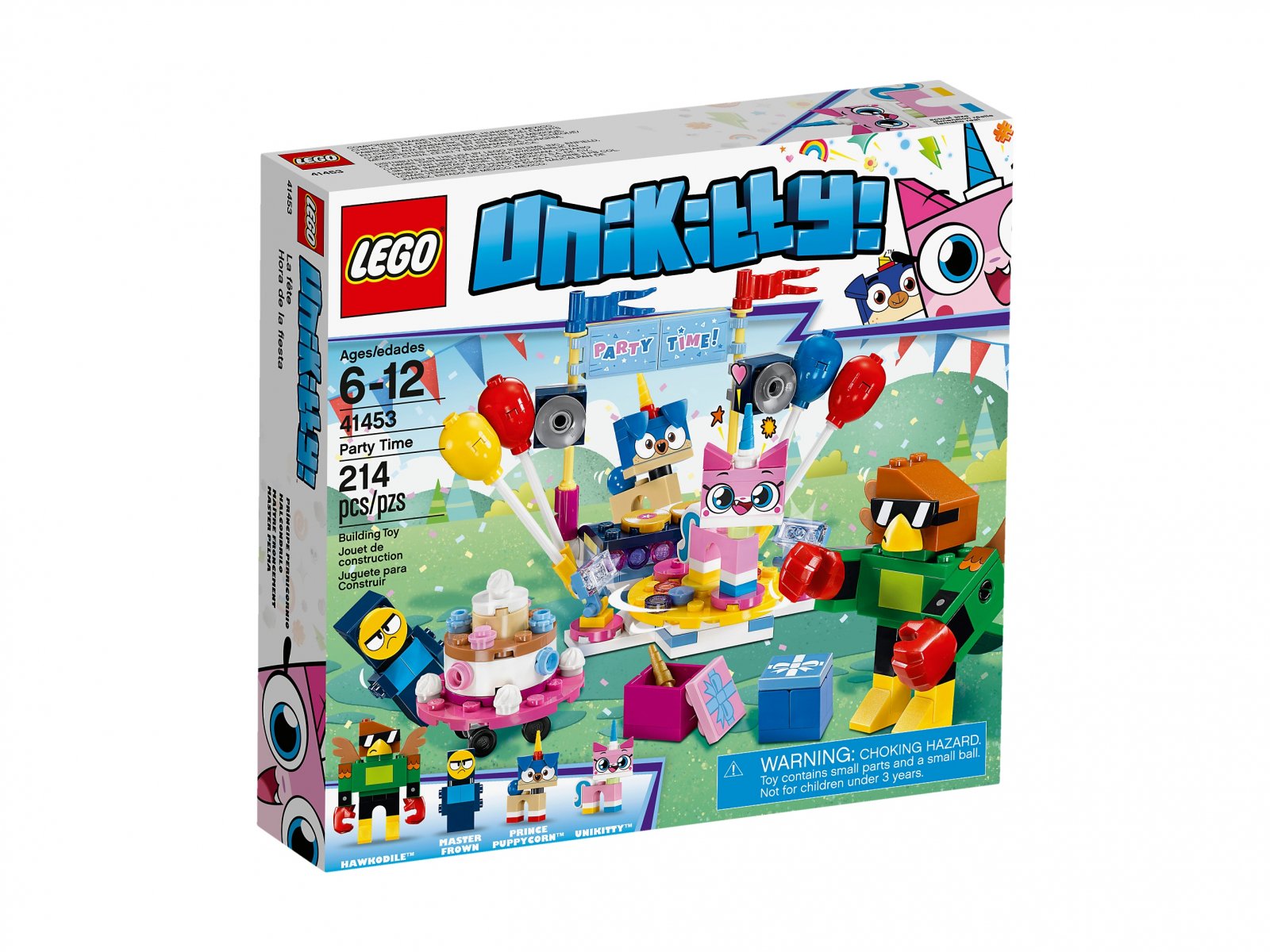Przeżyj ponownie ulubione sceny z najbardziej radosnego, błyszczącego i kolorowego serialu telewizyjnego na antenie w zestawie LEGO® Unikitty™! 41453 Czas na imprezę. Znajdziesz w nim stanowisko DJ-a z gramofonami, głośnikami, balonami i flagami, obracający się parkiet ze światłami, prezenty dla gości i ogromny tort urodzinowy na wózku z kołami. W zestawie są także cztery postacie z serialu telewizyjnego do zbudowania, które pomogą Ci stworzyć imprezową atmosferę!