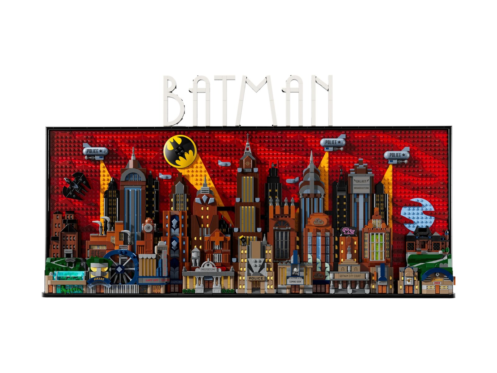 Panorama miasta Gotham składająca się z 4210 elementów ma 76 cm szerokości. Zawiera ona 15 paneli, które można odczepić, aby odsłonić wnętrze rezydencji Wayne’ów, jaskini Batmana oraz Azylu Arkham a także działania licznych złoczyńców z serialu Batman: The Animated Series. Zestaw zawiera także cztery minifigurki — Batmana, Jokera™, Harley Quinn™ i Kobietę-Kota™ — oraz wyjmowany Batmobil™ i Batwing™. Gotowy model można zawiesić na ścianie lub postawić dzięki rozkładanej podstawce. Dwa zestawy dołączonych instrukcji budowania pozwalają budować dwóm osobom jednocześnie. Dla większej wygody cyfrową wersję instrukcji do zestawu można znaleźć w aplikacji LEGO Builder.
