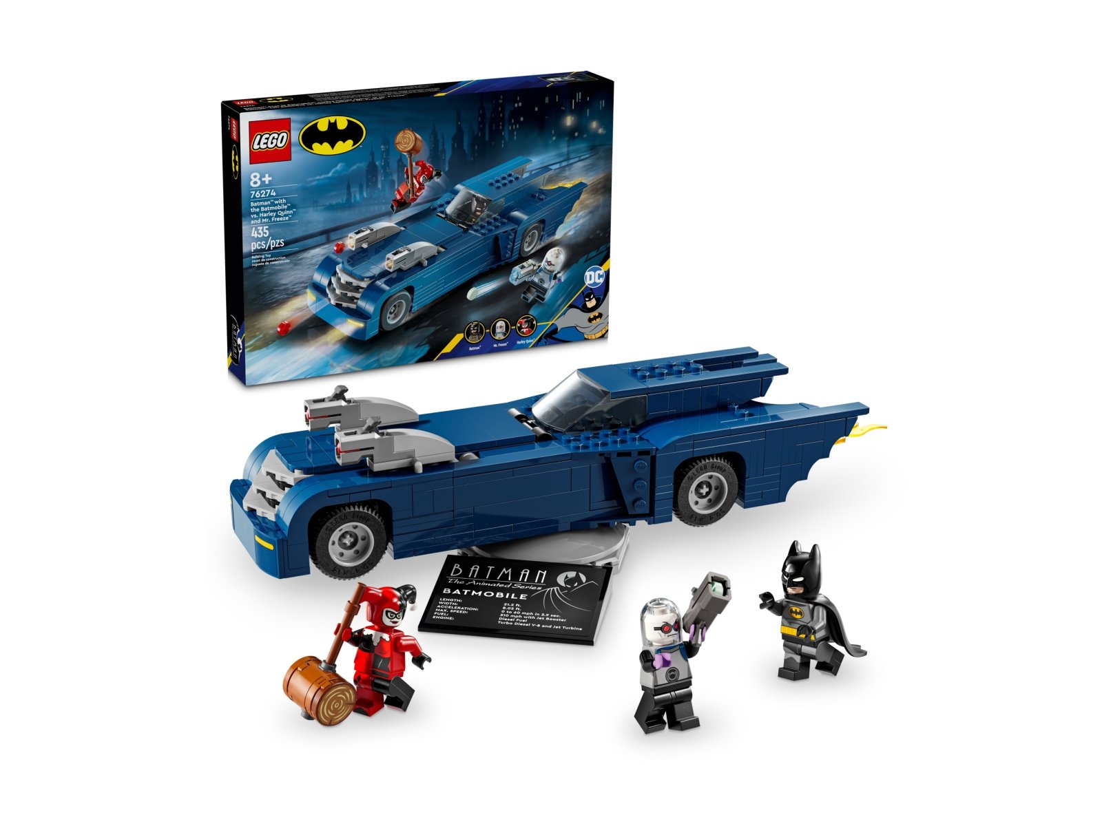 - Figurki z serialu „Batman” — zestaw obejmuje batmobil™ do zbudowania z minifigurkami Batmana, Harley Quinn™ i Mr. Freeze’a™