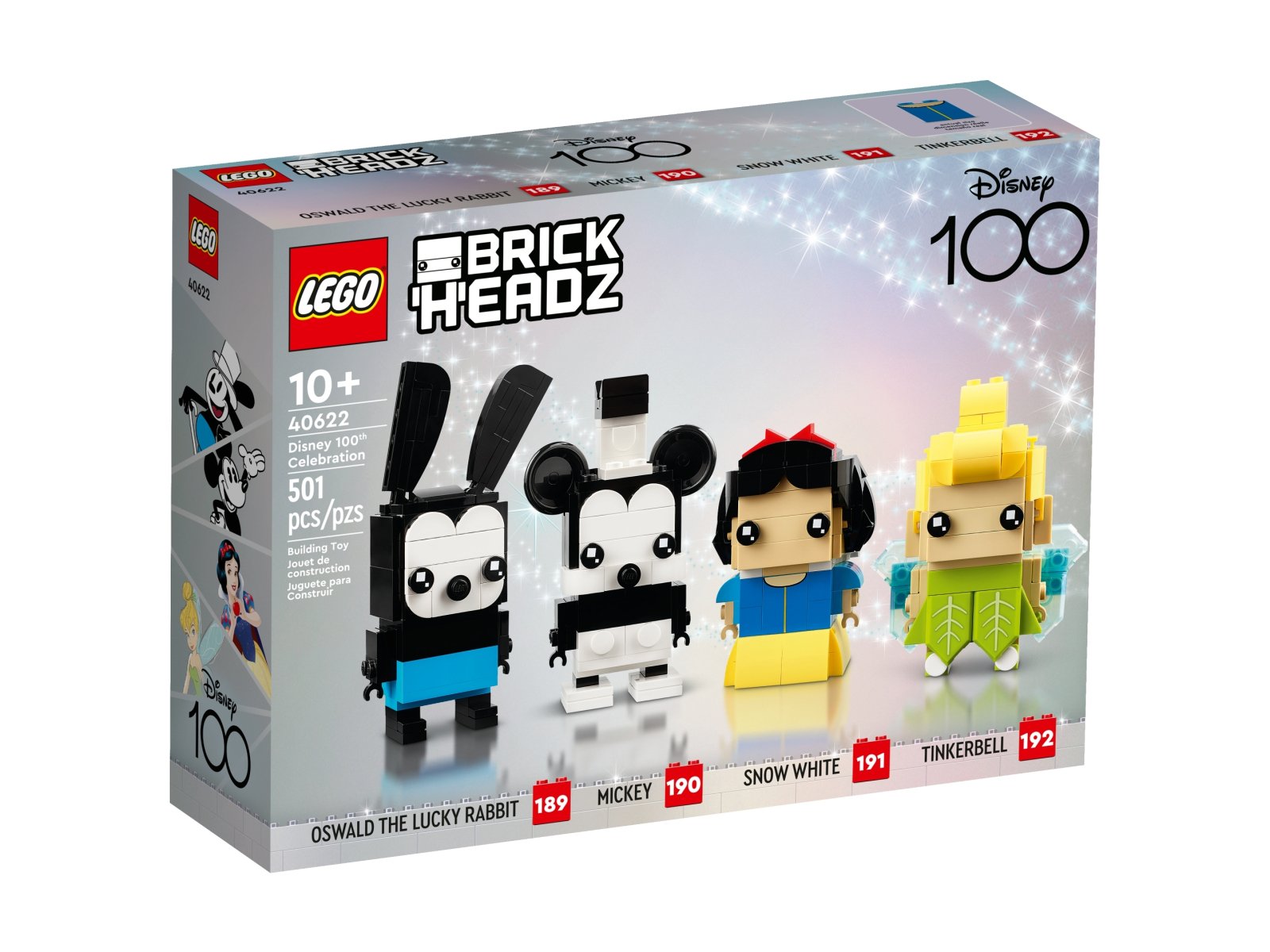 - Kultowe postacie – figurki do zbudowania w zestawie LEGO® BrickHeadz™ Disney — 100. urodziny (40622) przedstawiające Królika Oswalda, Myszkę Miki, Królewnę Śnieżkę i Dzwoneczek będą świetną ozdobą