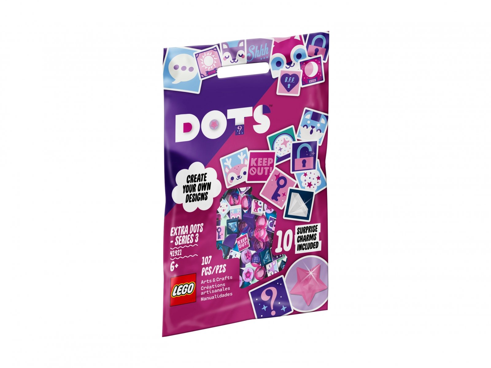 - Zestaw LEGO® DOTS Dodatki DOTS — Seria 3 (41921) zachęca do wyrażania siebie i sprawi, że mali miłośnicy samodzielnie wykonanej biżuterii będą w siódmym niebie. Zawartość woreczka to część niespodzianki!