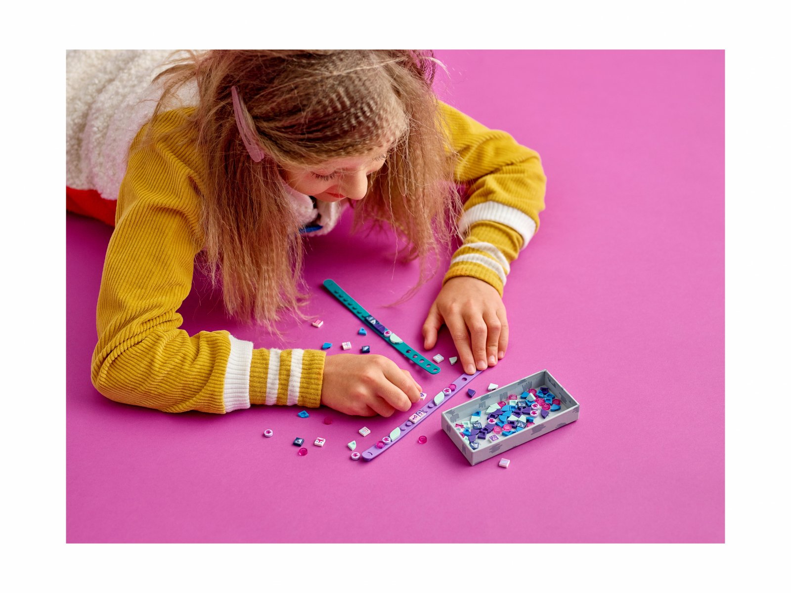 - Uniwersalne płytki nadają się do dekorowania bransoletek i domowych ozdób. Dzieci mogą łączyć je zestawami DOTS i innymi zabawkami LEGO®, aby dowolnie je przerabiać.