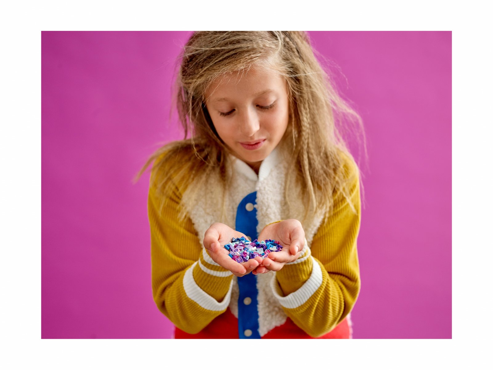 W woreczku czeka 107 kolorowych płytek, w tym płytki w kształcie gwiazdki i diamentu z efektem 3D oraz dziesięć specjalnych, tajnych płytek z dekoracjami wybranymi losowo z puli 16 wzorów. Teraz dzieci mogą dowolnie ozdabiać bransoletki i domowe dekoracje, a przy tym rozwijać twórcze umiejętności.