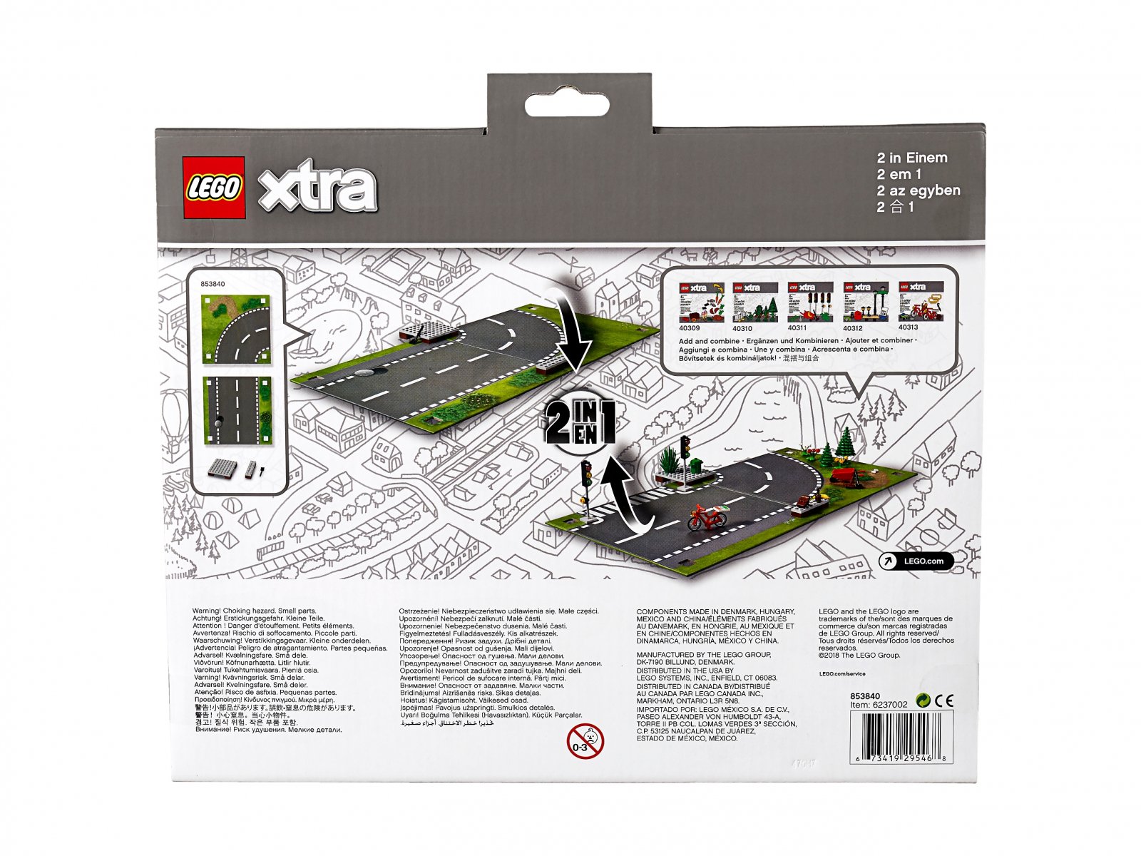 Plansza drogowa z zestawu LEGO® xtra 853840 to większe pole do zabawy i dla Twojej wyobraźni! W zestawie znajdziesz 2 laminowane, dwustronne plansze z nadrukowanymi grafikami, 2 łączniki z klocków oraz klocek łopaty, który pomoże rozpocząć zabawę — na przykład w roboty drogowe! Elementy są dwustronne, więc da się z nich ułożyć 4 różne scenerie. Te dodatkowe akcesoria w połączeniu z każdym zestawem LEGO dadzą dzieciom nowe, nieograniczone możliwości zabawy.