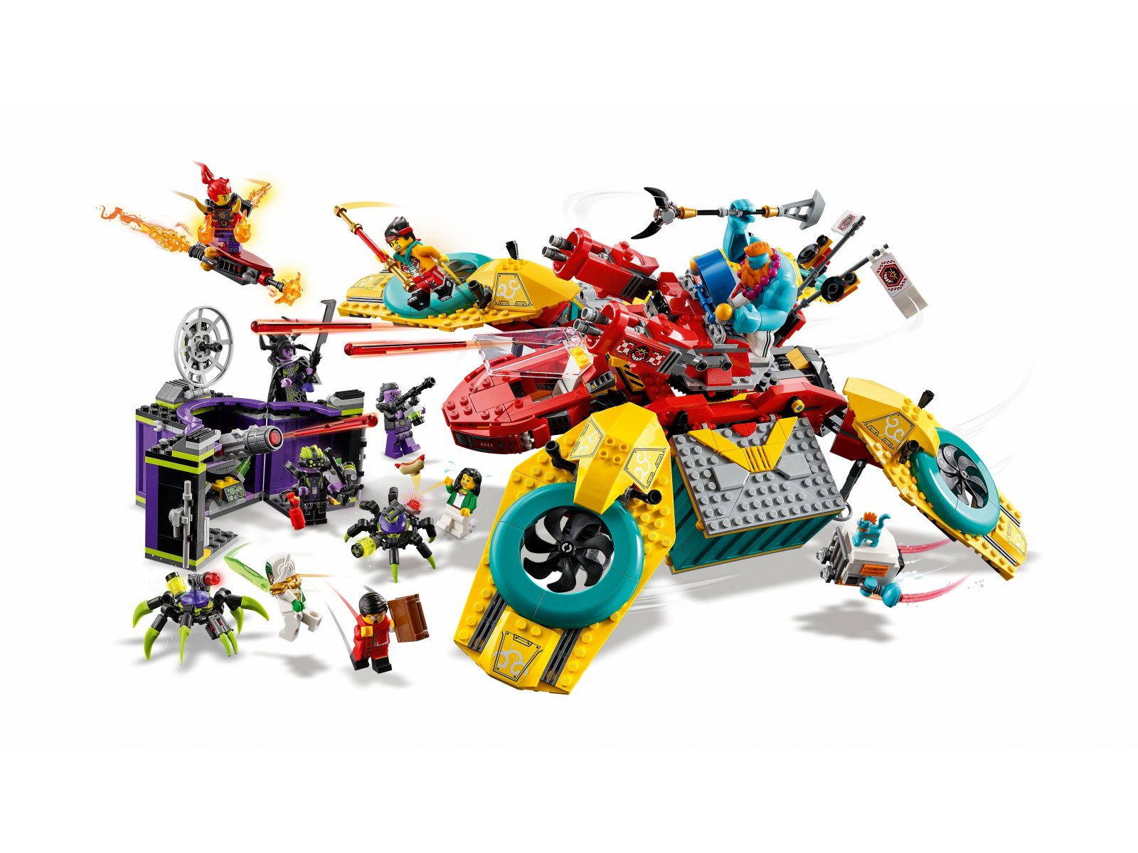 - W zestawie osiem minifigurek: Monkie Kid, Mei, Mr. Tang, Huntsman, Syntax, Red Son, Spider Queen i Fei. Do tego koty Sandy i Mo oraz inspirująca broń i akcesoria.