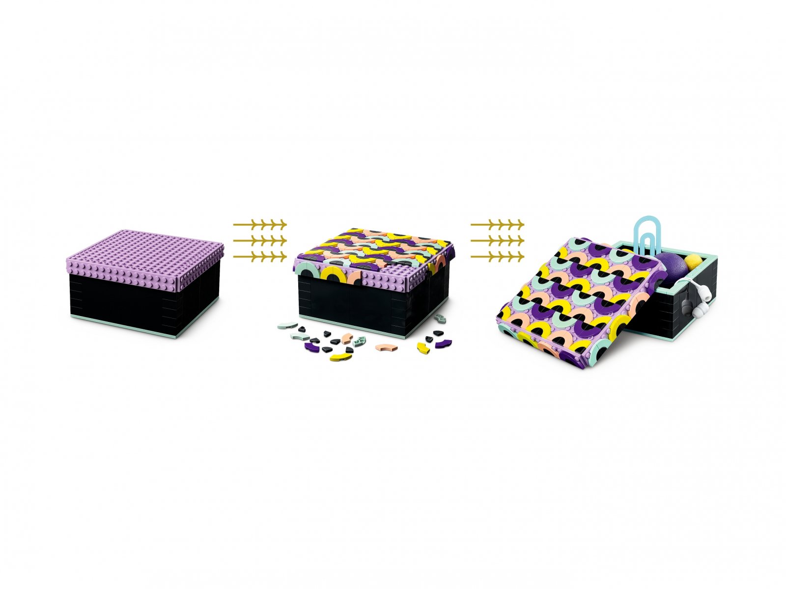 - Swoboda i pewność siebie — ten zestaw LEGO® DOTS to esencja swobodnego tworzenia. Łatwe do złożenia pudełko z pokrywką daje okazję do stworzenia malutkiego dzieła sztuki i zabawy połączonej z rozwijaniem pomysłowości oraz wytrwałości
