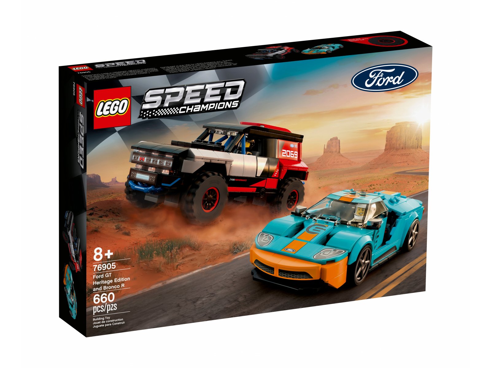 - Imponujący zestaw konstrukcyjny LEGO® Speed Champions Ford GT Heritage Edition i Bronco R (76905) to coś w sam raz dla fanów niezwykłych samochodów i ekscytujących wyścigów.