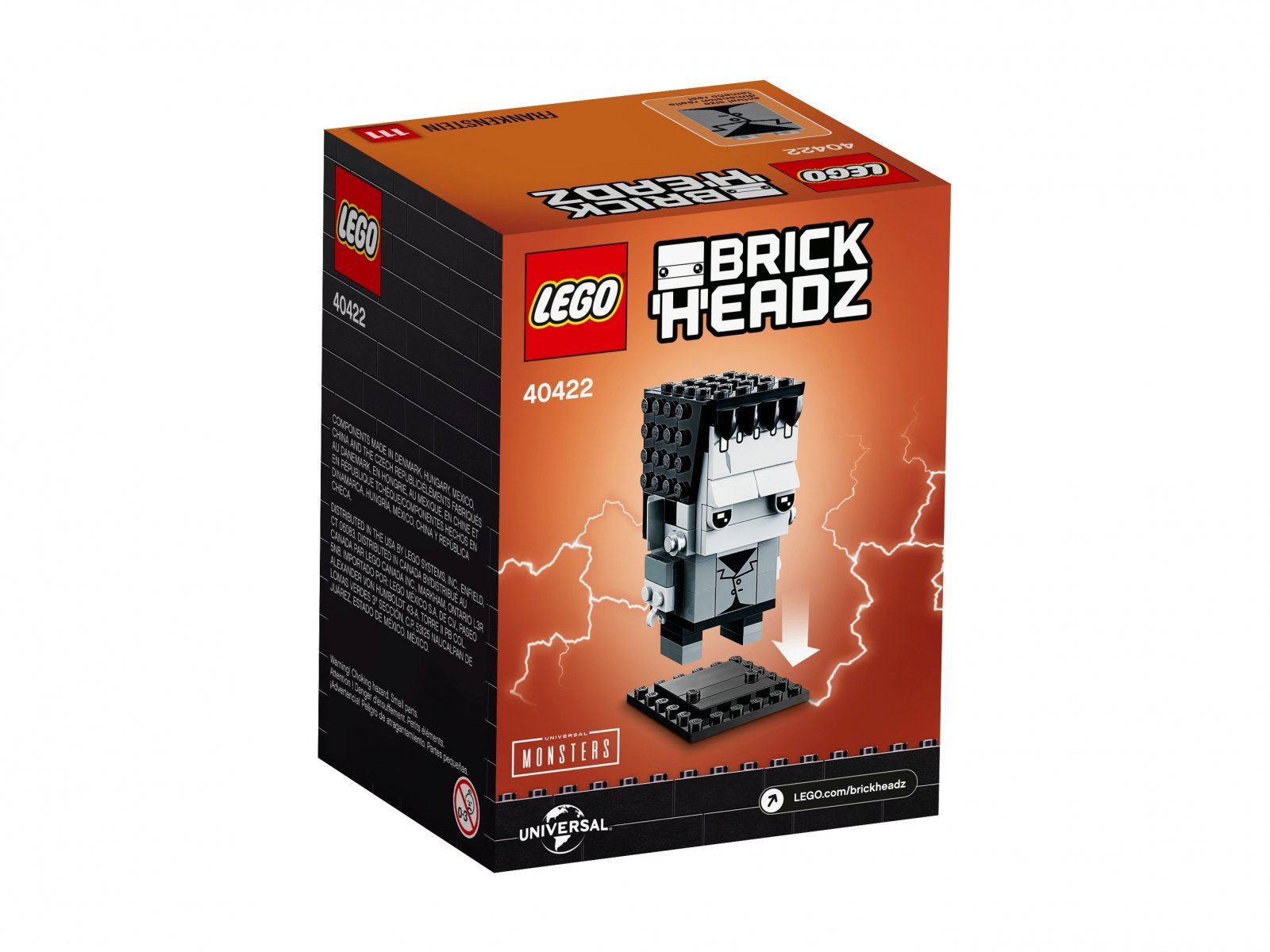 Zestaw Frankenstein z serii LEGO® BrickHeadz™ (40422) to zabawna interpretacja słynnej postaci znanej z filmów i literatury. Figurka stanowi część kolekcji LEGO BrickHeadz, więc wraz z nią w zestawie znalazła się tabliczka informacyjna i solidna płytka, która pozwala wyeksponować postać — osobno lub wraz z innymi modelami BrickHeadz. To będzie fantastyczny prezent dla dzieci, kolekcjonerów modeli BrickHeadz i wielbicieli Frankensteina!