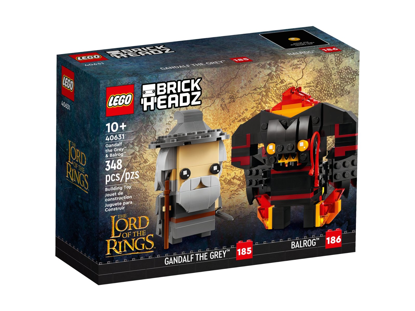 - Zestaw konstrukcyjny LEGO® BrickHeadz™ Gandalf Szary™ i Balrog™ (40631) – zawiera figurkę LEGO BrickHeadz Gandalfa z mieczem i laską oraz figurkę Balroga z biczem