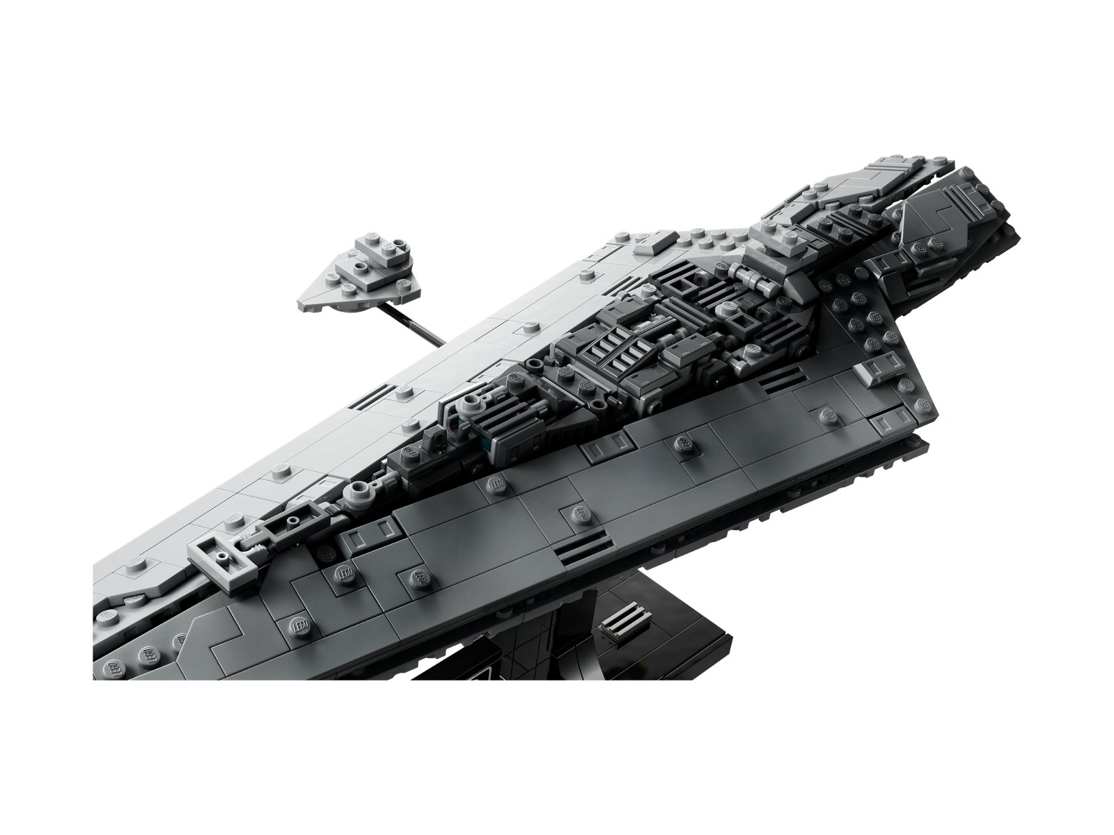 - Dwa gwiezdne niszczyciele — dołącz dwa zbudowane z klocków modele gwiezdnych niszczycieli z przezroczystymi elementami, aby pokazać skalę jednego z największych imperialnych statków kosmicznych, jakie kiedykolwiek stworzono