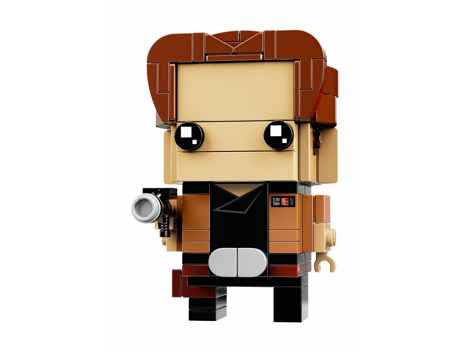 - Figurka Hana Solo do zbudowania z serii LEGO® BrickHeadz™ ma realistyczne detale z sagi „Gwiezdnych wojen”, takie jak charakterystyczna brązowa kurtka, pas na narzędzia i odczepiany blaster.