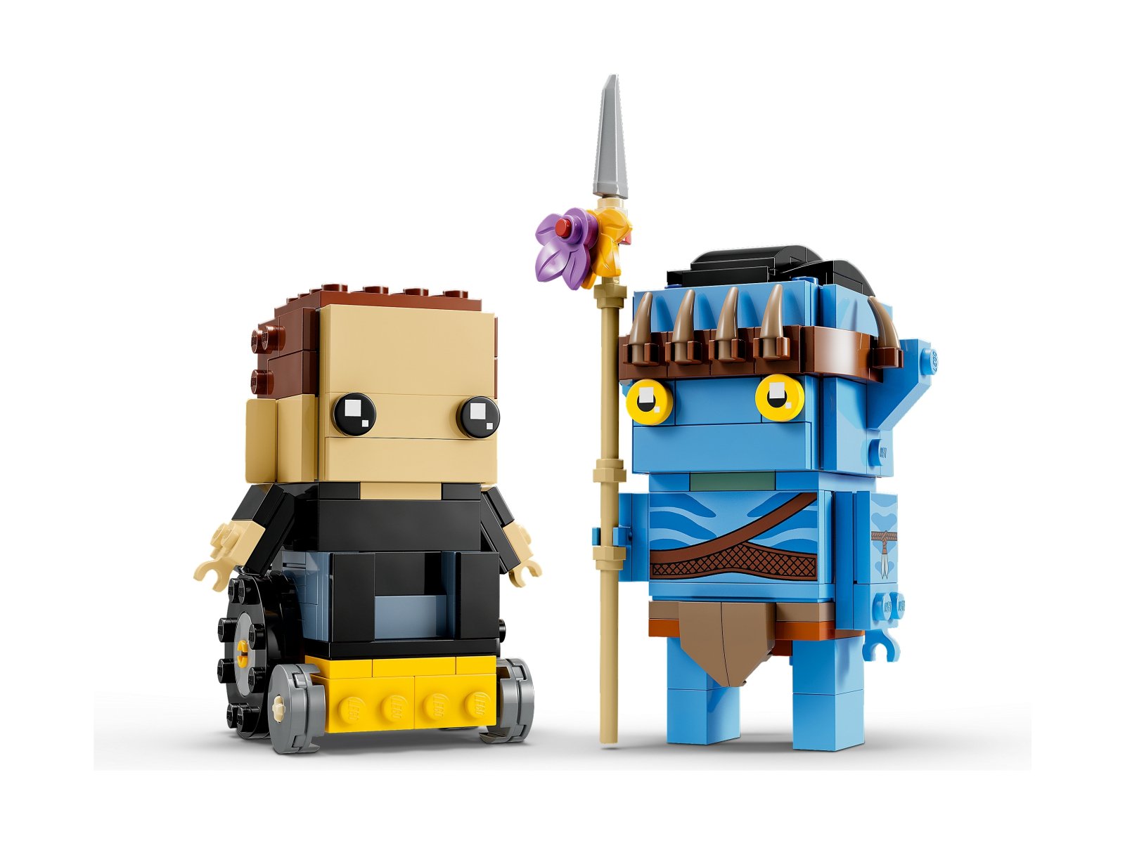 Miłośnicy LEGO® BrickHeadz™ i filmu Avatar będą zachwyceni tym zestawem z Jakiem Sullym i jego awatarem (40554), który przedstawia Jake'a w jego ludzkiej postaci, z doczepianym wózkiem inwalidzkim, a jako awatar z włócznią Na'vi. Obie wersje postaci można postawić na solidnych płytkach konstrukcyjnych, dzięki czemu idealnie nadają się zarówno do zabawy, jak i do eksponowania. Kolekcjonerzy zestawów LEGO BrickHeadz mogą też bawić się w łączenie obu modeli i tworzenie własnych, zwariowanych hybryd postaci.