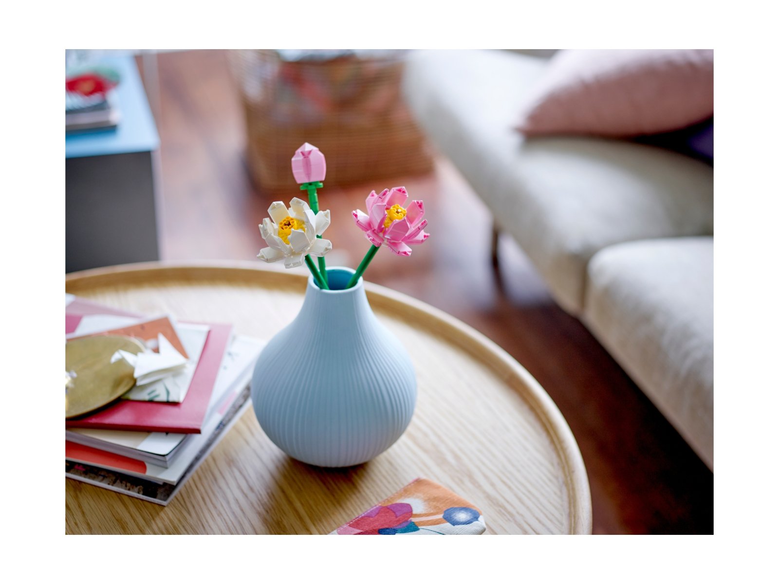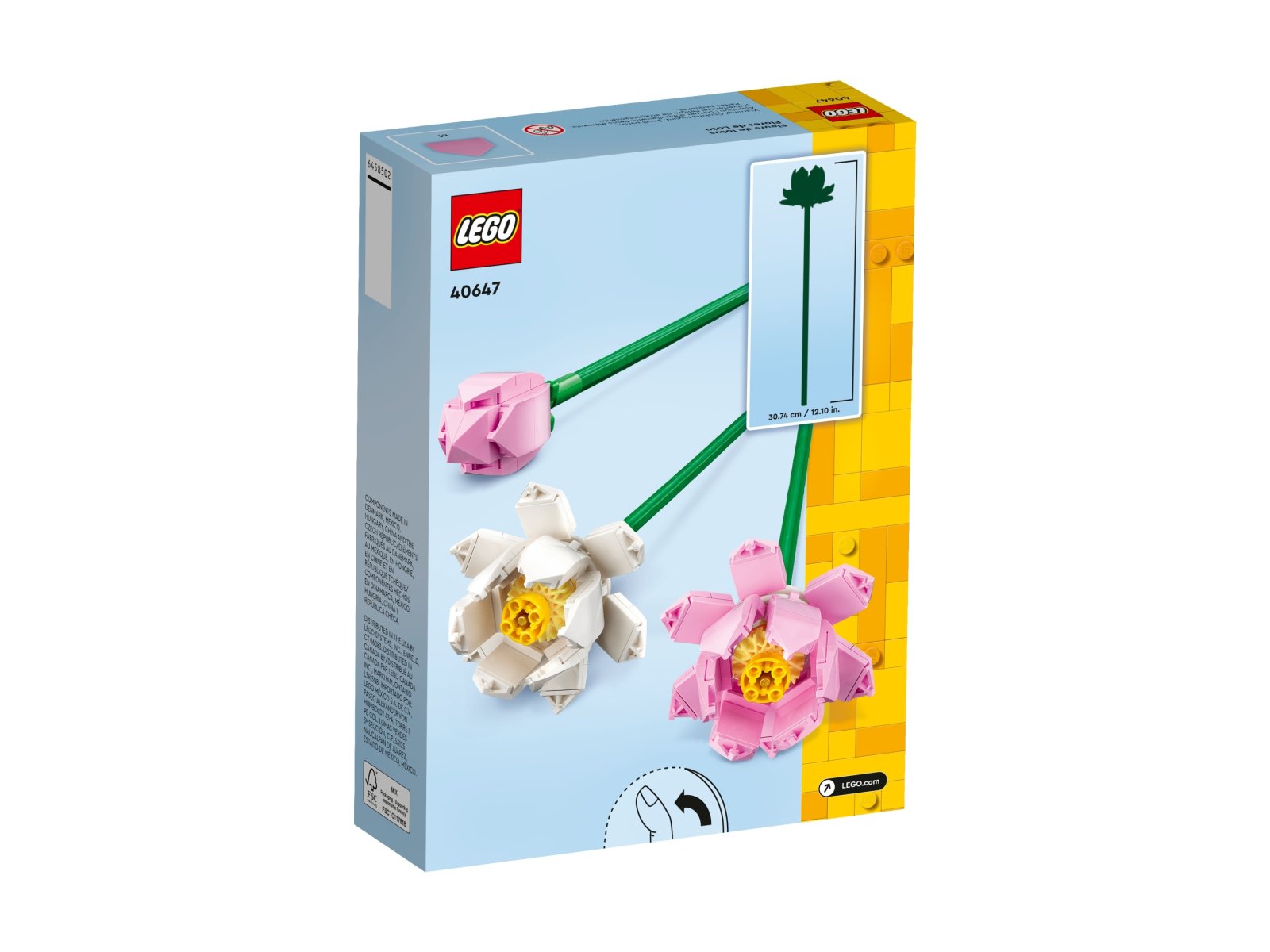 - Bukiet LEGO® do zbudowania — dzięki zestawowi Kwiaty lotosu LEGO (40647) stworzysz kwiatową kompozycję, która ozdobi dowolne pomieszczenie. Zestaw został stworzony dla fanów wystroju wnętrz i inspirujących projektów LEGO