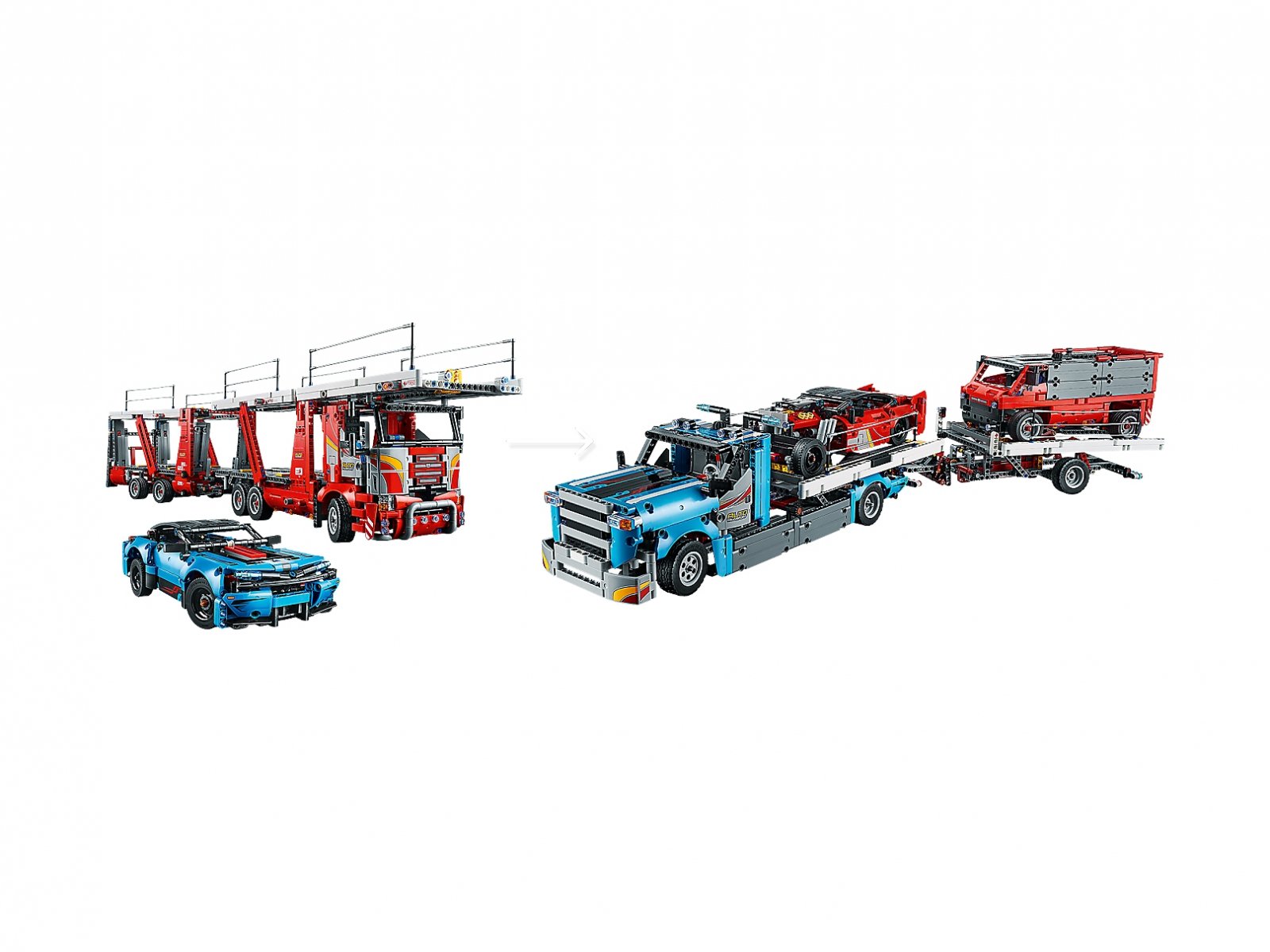 Zestaw LEGO Technic 42098 Laweta pozwoli młodym budowniczym LEGO® poznać podstawowe zasady konstrukcji maszyn. Ta wierna replika posiada szereg realistycznych cech i funkcji, które zapewnią wiele godzin zabawy i odkrywania tajników konstrukcji modelu. Pokłady samochodowe oraz tylna rampa podnoszą się i opuszczają, aby umożliwić łatwy wjazd na górny i dolny poziom. Samochody można także zablokować w pozycji umożliwiającej bezpieczny transport, a kabina kierowcy odchyla się, odsłaniając silnik V6 z ruchomymi tłokami. W liczącym 2493 klocki zestawie znajdziesz także fajny, niebieski samochód z działającym układem kierowniczym i silnikiem V8. Laweta pod względem skali jest też zgodna z modelem Chevroleta Corvette ZR1 z zestawu 42093 (sprzedawany osobno). Model ma klasyczną czerwono-szaro-czarną kolorystykę, a w komplecie są również naklejki przedstawiające dodatkowe detale. Zestaw „2 w 1” pozwala zamiast lawety zbudować także ciężarówkę i samochody pokazowe LEGO Technic!