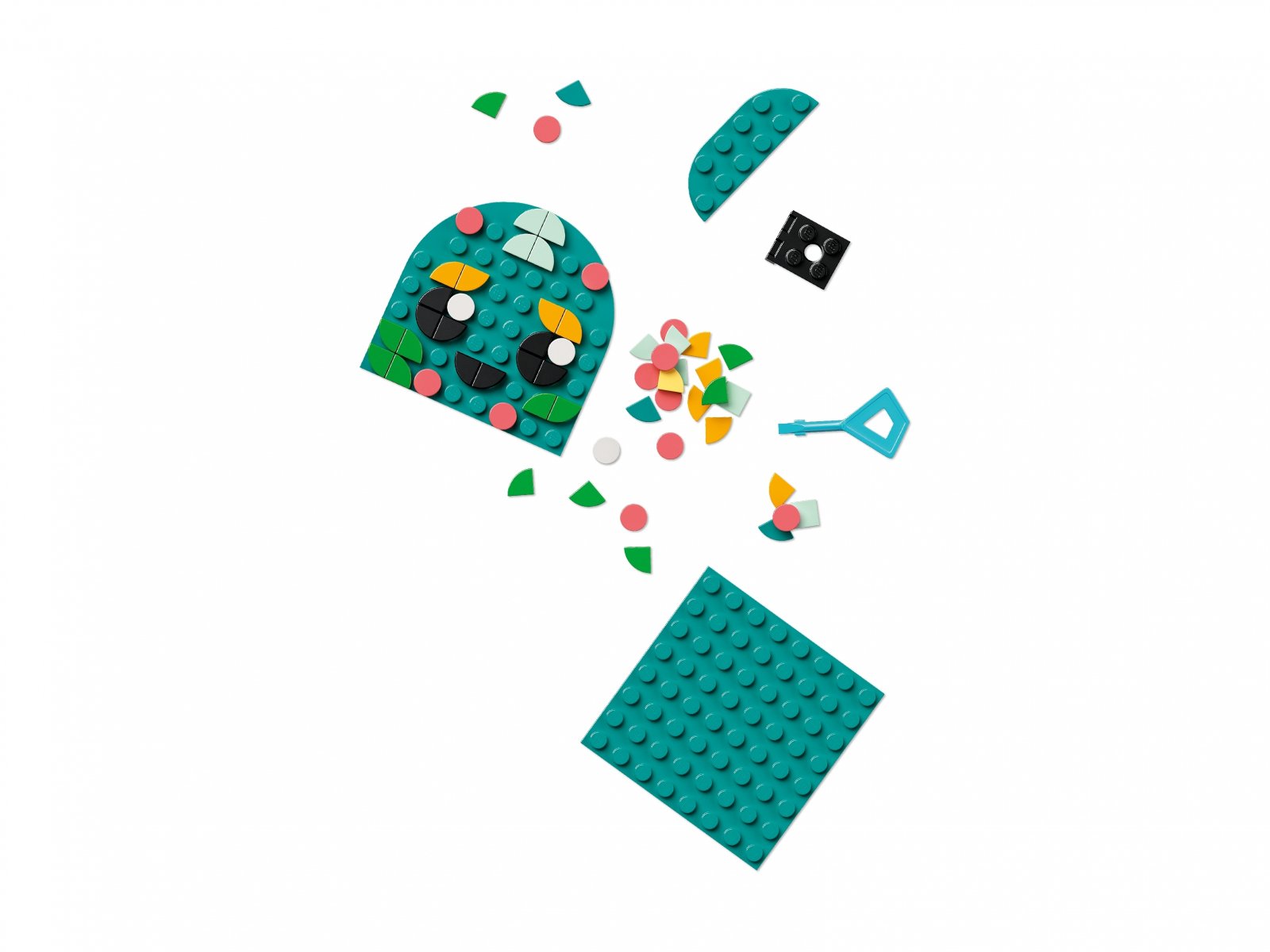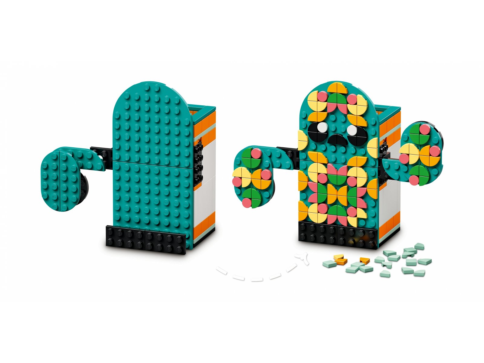 W tym zestawie znajdziesz kilka różnych akcesoriów i ozdób DOTS do udekorowania: bransoletkę, zawieszkę z lwem, ramkę do powieszenia na ścianie oraz pojemnik na długopisy w kształcie kaktusa. Na każdym z przedmiotów można tworzyć niezliczone wzory z dołączonych do kompletu płytek albo skorzystać z poszerzonych kreatywnych możliwości oferowanych przez zestaw Dodatki DOTS — seria 5 (41932, sprzedawany oddzielnie).