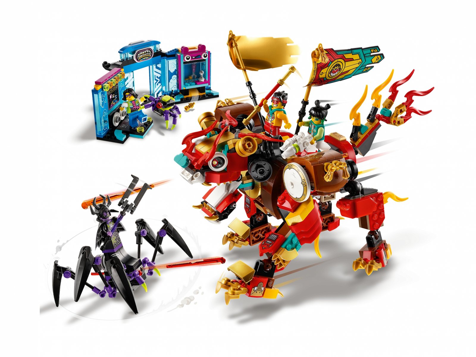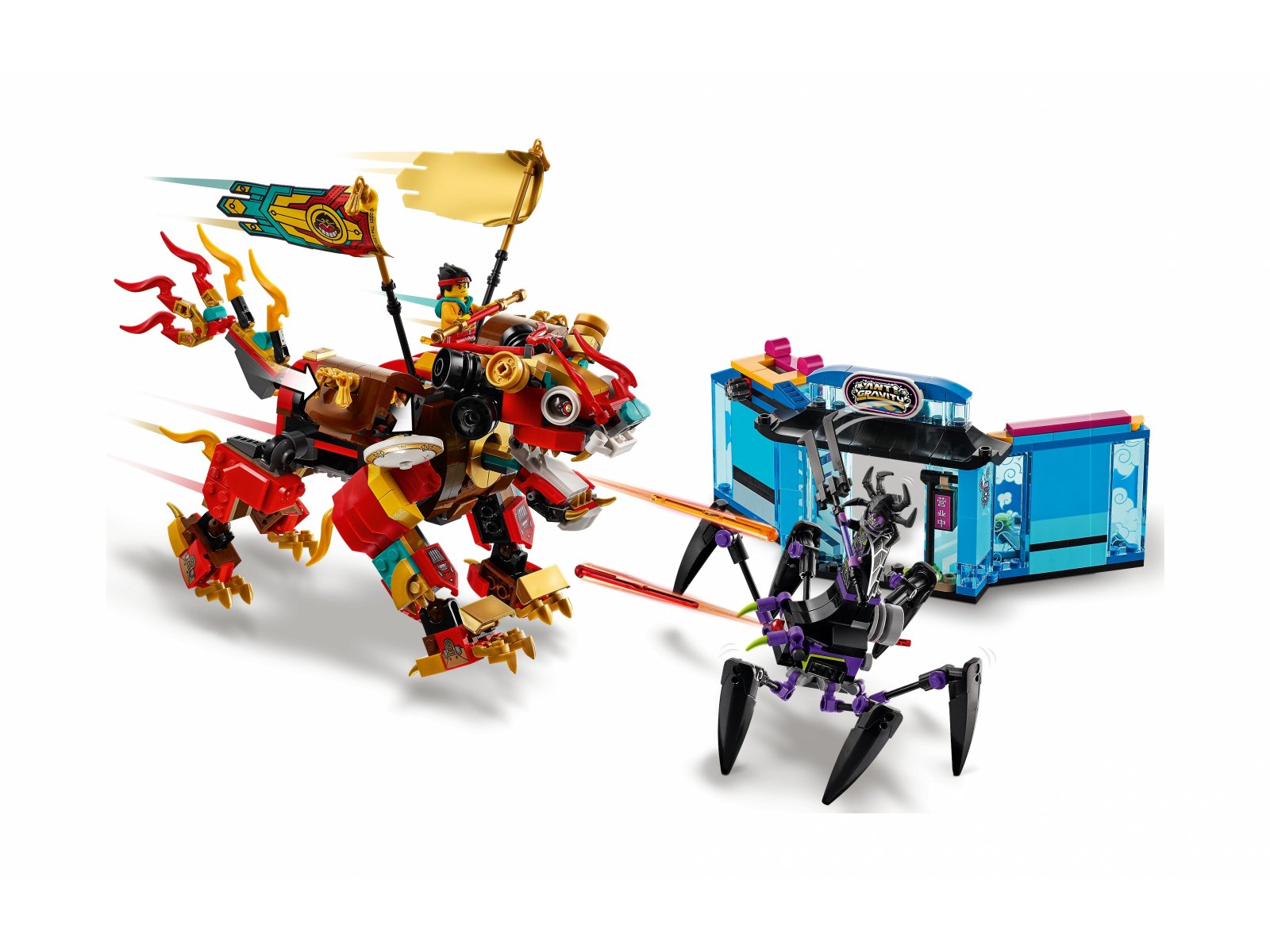 - Zestaw LEGO® Monkie Kid™ 80021 z automatem zręcznościowym do zbudowania i mechem Lwim Strażnikiem zainspiruje dzieci do wymyślania zabaw, w których one same będą bohaterami walczącymi z machiną bojową i robotycznym pająkiem.