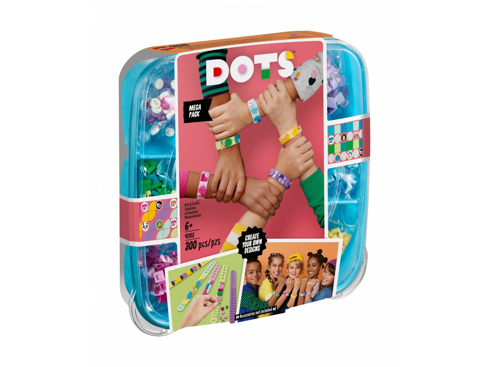 - Podaruj dziecku zestaw LEGO® DOTS Megazestaw bransoletek (41913), który zawiera pięć regulowanych opasek oraz 295 kolorowych płytek i pozwoli Twojemu dziecku zająć się fascynującym projektowaniem oryginalnych „bransoletek przyjaźni”. Zabawa zaczyna się od razu po otwarciu opakowania!