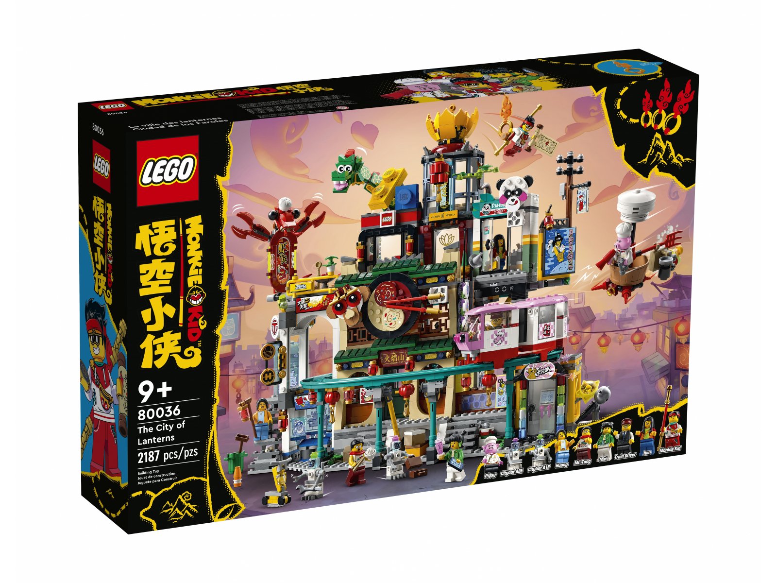 Zestaw LEGO® Monkie Kid™ 80036 pozwala dzieciom zbudować Miasto Latarni do wszechstronnej zabawy. Zawiera model sklepu LEGO, hotel, sklep Szybka Panda, dwie restauracje, budkę karaoke, kawiarnię z bąbelkową herbatką, szybki pociąg do przemieszczania się z punktu do punktu i wijące się wokół miasta tory. Budynki można łatwo odczepić i połączyć na wiele różnych sposobów, aby zbudować wyjątkowe miasto.