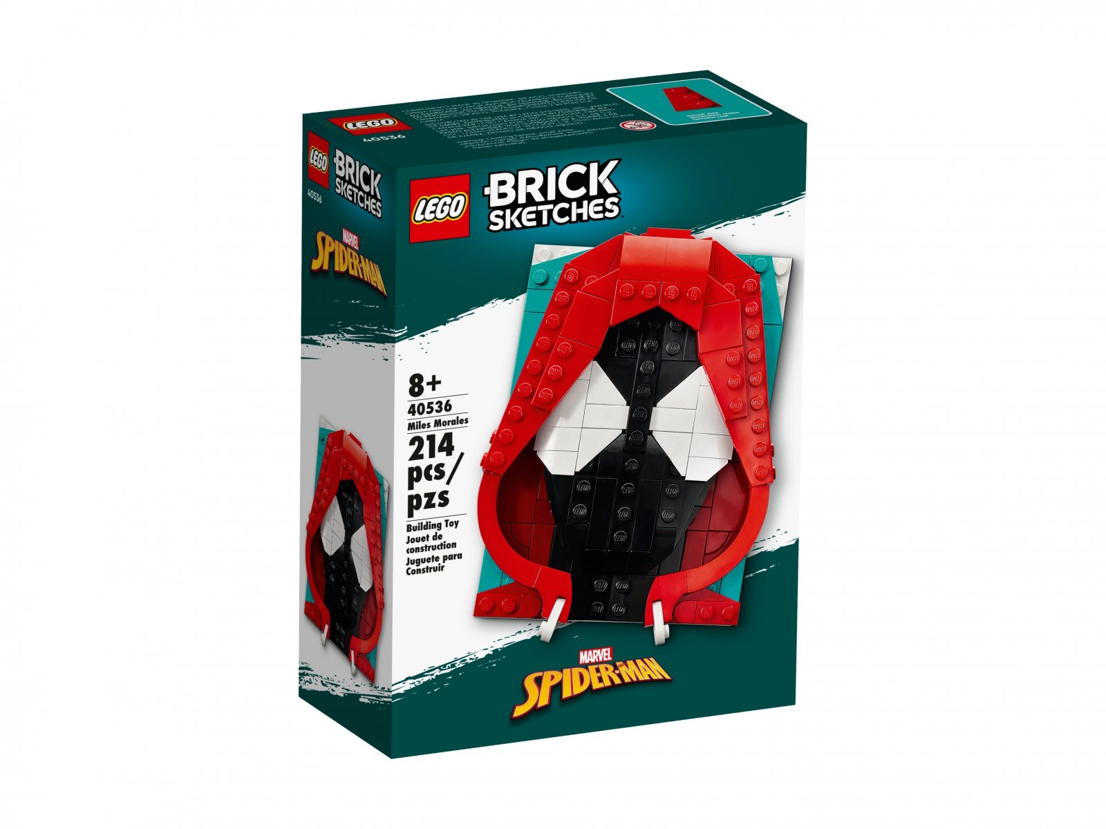 - Ilustracja z superbohaterem — młodzi konstruktorzy LEGO® i fani Spider-Mana mogą zbudować kolekcjonerski portret Brick Sketches™ przedstawiający słynnego pajęczego bohatera, Milesa Moralesa