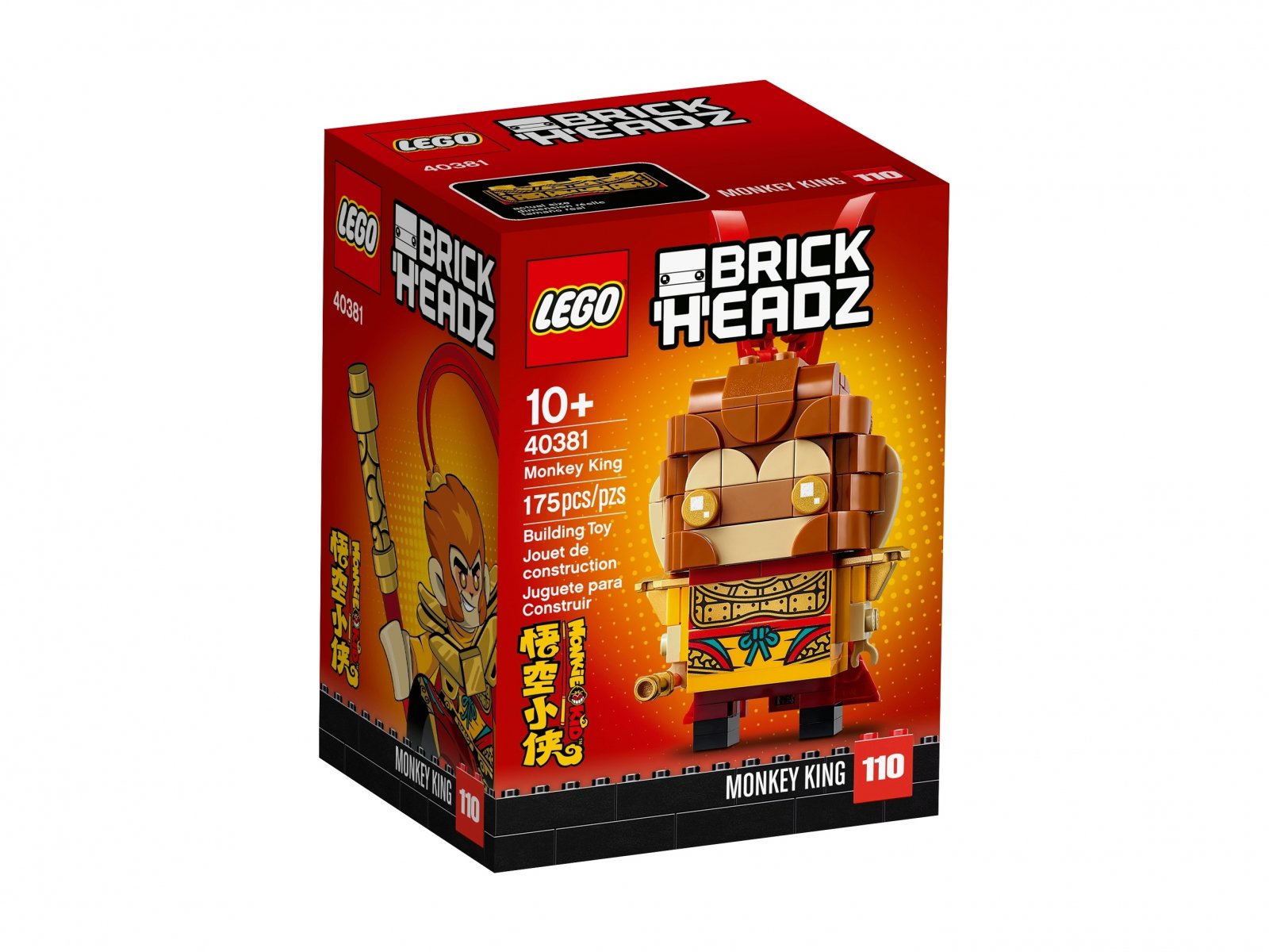 - Zestaw 40381 pozwala fanom LEGO® Monkie Kida™ zbudować postać Małpiego Króla w wersji LEGO BrickHeadz™, która jest interpretacją legendarnej postaci z powieści „Wędrówka na Zachód”, a przy tym wspaniałą ozdobą pomieszczenia.