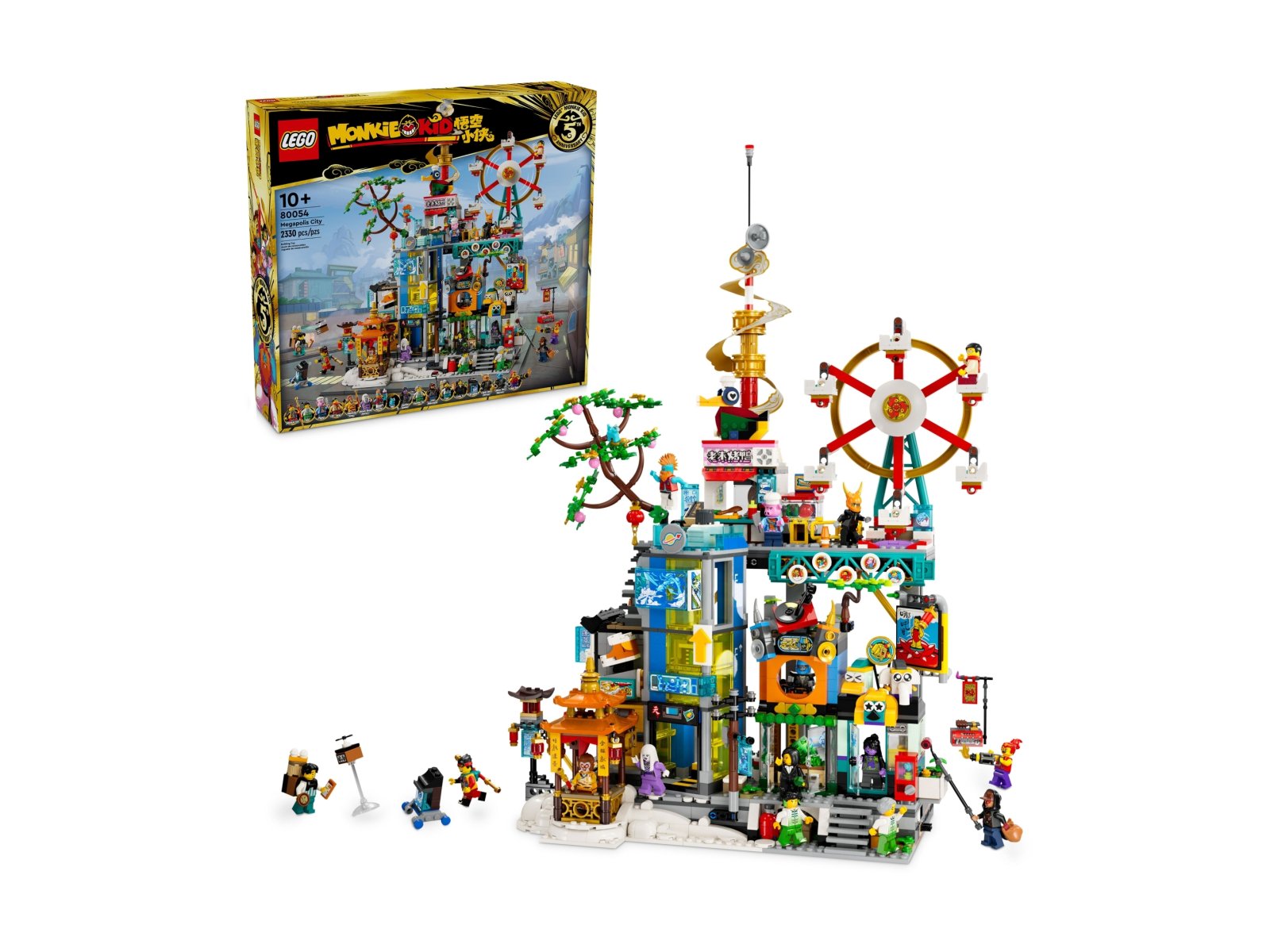 Zachęć dzieci w wieku od 10 lat do kreatywnego budowania dzięki szczegółowemu zestawowi LEGO® Monkie Kid™ 5. rocznica Megapolis (80054). Model składa się z 2330 elementów i zawiera diabelski młyn, działającą windę i mnóstwo akcesoriów. Dzieci mają też do wyboru wiele postaci, w tym minifigurki bohaterów i złoczyńców, które umożliwiają nieograniczone odgrywanie ról i wymyślanie historii.