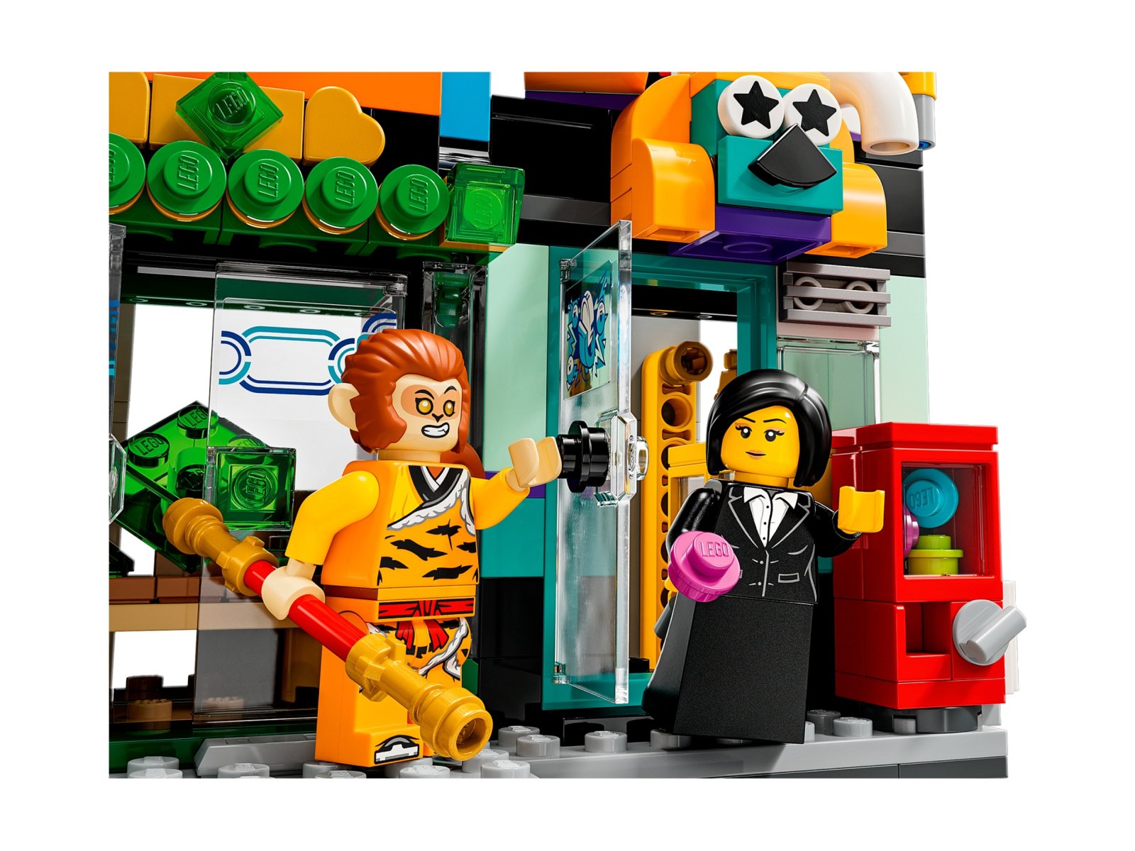 - Postacie z serialu Monkie Kid — dzieci mają do dyspozycji 16 minifigurek popularnych postaci, w tym Mei, Monkie Kida, Monkey Kinga, Sandy, Pajęczą Królową, białego kościanego demona, pana Tanga i nie tylko, a także figurkę kota LEGO® Mo