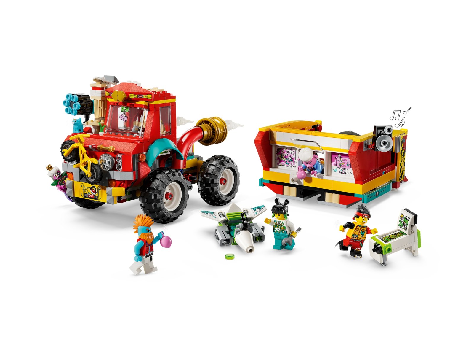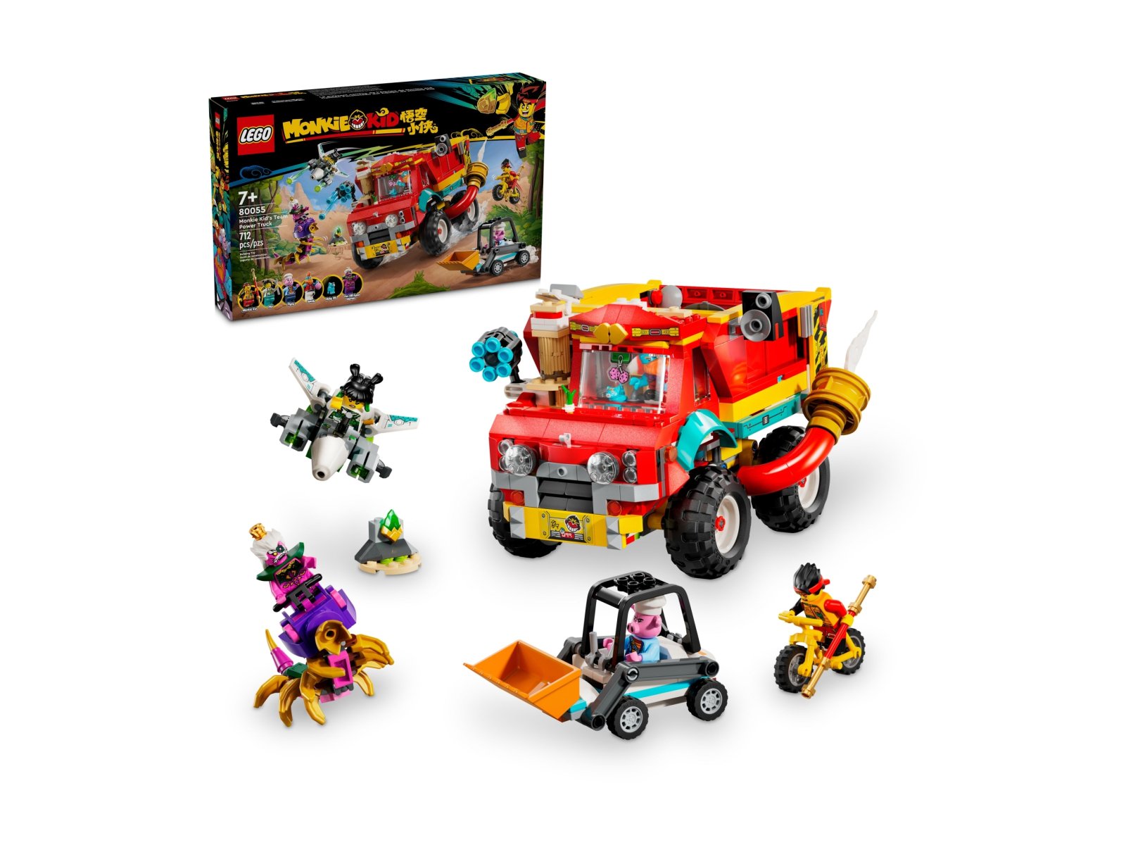- Ciężarówka do przebudowywania — ten zestaw LEGO® Monkie Kid™ zawiera ciężarówkę ze zdejmowaną platformą, ruchomymi rurami wydechowymi i nie tylko, a także minifigurki Mei, Monkie Kida i czterech innych postaci