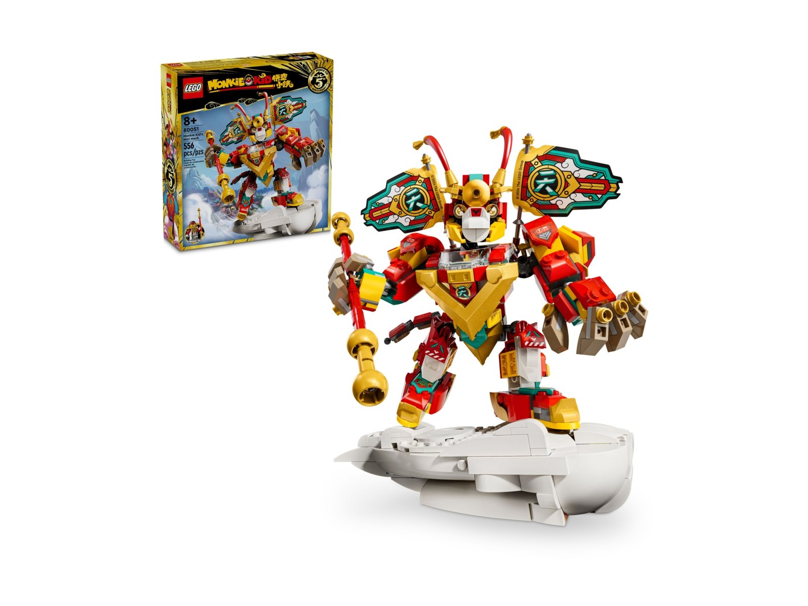 - Ruchoma figurka — podaruj chłopcom i dziewczynkom w wieku od ośmiu lat zestaw z minimechem Monkie Kida i świętuj piątą rocznicę modeli LEGO® Monkie Kid™
