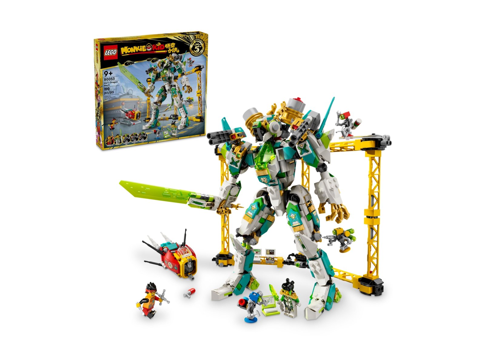- Smocza zabawa — dzieci w wieku od dziewięciu lat (oraz dorośli!) mogą bawić się tą ruchomą figurką smoczego mecha-wojownika Mei i świętować piątą rocznicę powstania zestawów LEGO® Monkie Kid™