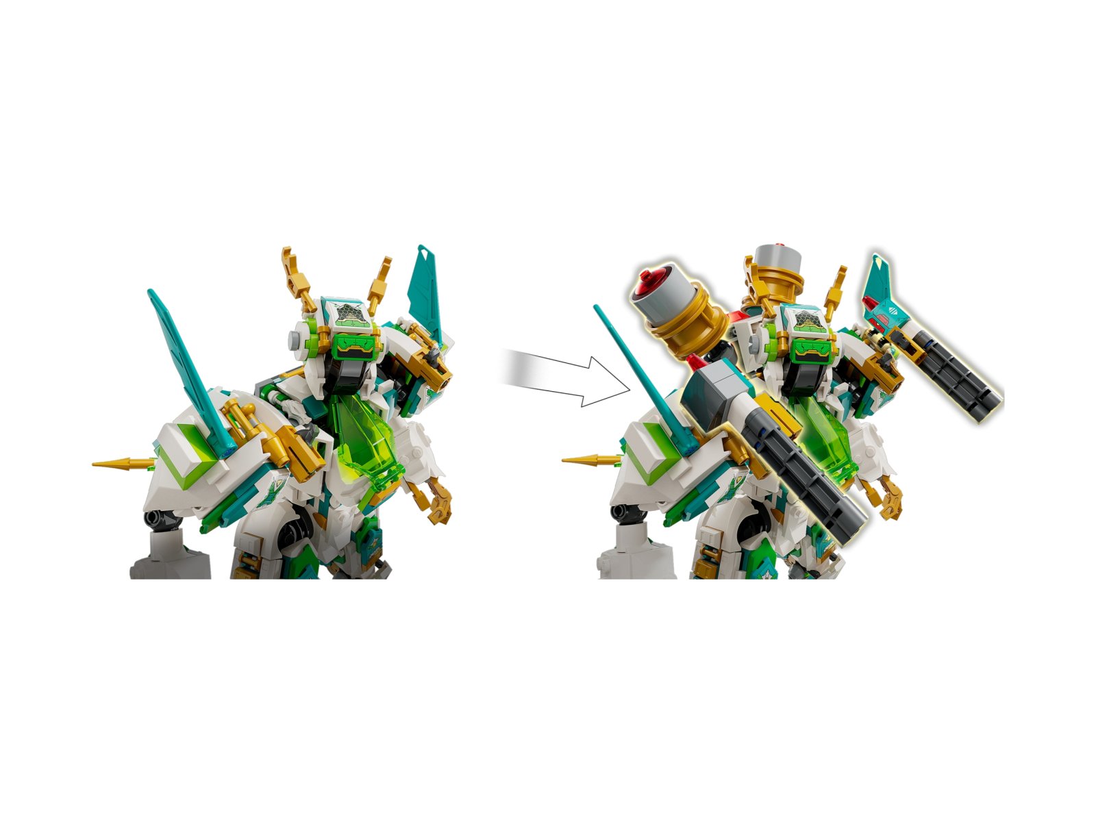 W tym zestawie LEGO® Monkie Kid™ — Smoczy mech Mei (80053) na dzieci i fanów smoczych zabawek w wieku od dziewięciu lat czekają akcja i przygody. Ruchomy mech ma przegubowe ręce i nogi, a w zestawie są także minifigurki Mei i Monkie Kida oraz trzy roboty serwisowe. Znajdziesz tu też podniebny motocykl do zbudowania, warsztat serwisowy, dopalacze rakietowe i broń, w tym smoczy miecz, dwa miotacze klocków na ramionach i złoty kostur, a także inne elementy ułatwiające wymyślanie historii.