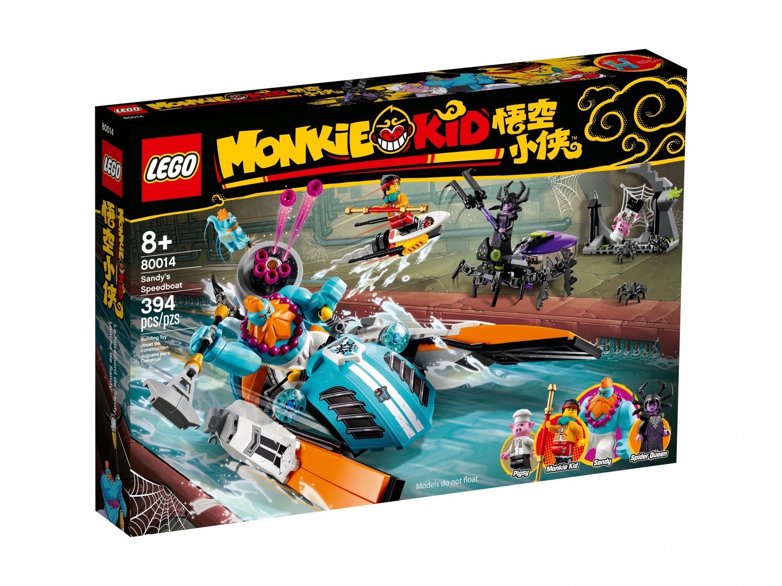 - Zestaw LEGO® Monkie Kid™ (80014) z rewelacyjną motorówką Sandy’ego, mechem oraz Jaskinią Jedwabnych Pajęczyn Spider Queen pozwoli dzieciom wcielać się w postacie Monkie Kida oraz Sandy’go i wyruszać na niebezpieczne misje ratunkowe.