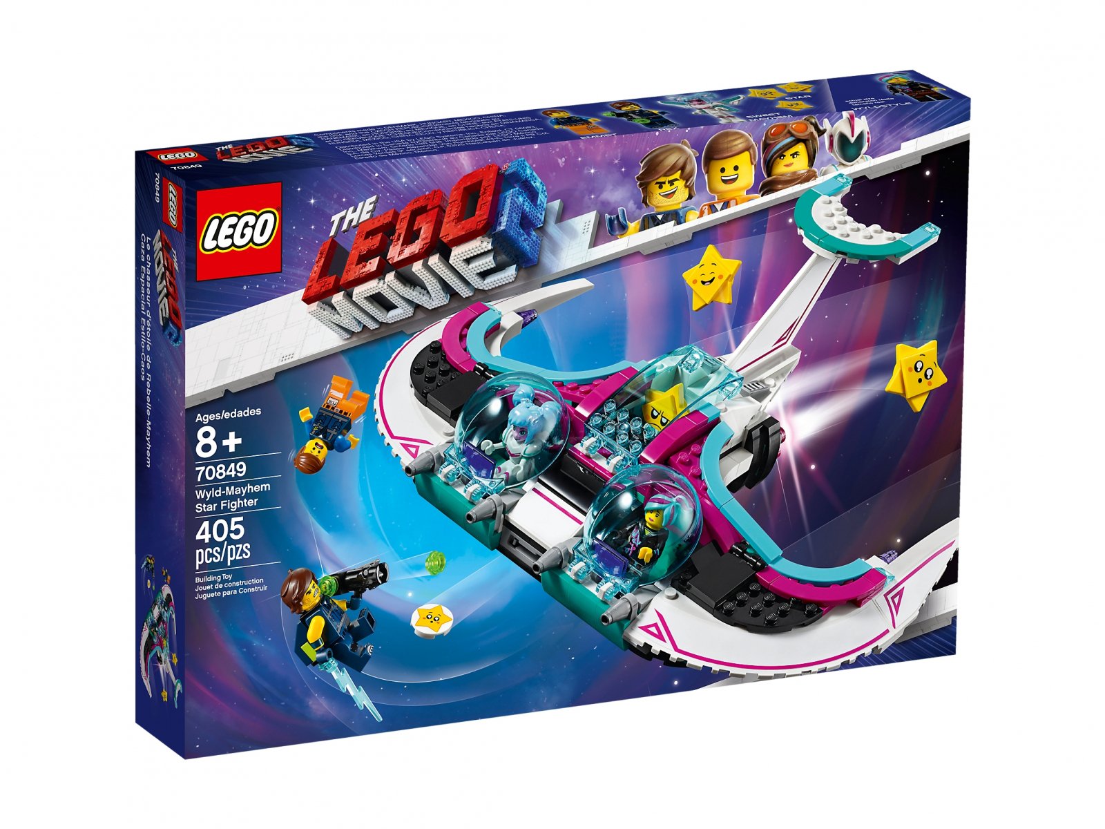 Strzelający gwiazdami statek kosmiczny dla fanów filmu LEGO® PRZYGODA 2™! Dzieci będą się doskonale bawić, wcielając się w popularne postacie z filmu LEGO® PRZYGODA 2™ i urządzając gwiezdne bitwy za pomocą zestawu 70849 Myśliwiec Słodka Żyleta. Statek kosmiczny LEGO ma dwa kokpity (jeden dla Żylety i jeden dla Słodkiej Zadymy), miotacz gwiezdnych dysków oraz funkcję zrzucania bomb, za pomocą której z tylnej części statku można zrzucić trzy figurki Gwiazdek. W tym zestawie z serii THE LEGO MOVIE 2 znajdziesz trzy minifigurki i minilaleczkę z bronią i akcesoriami.