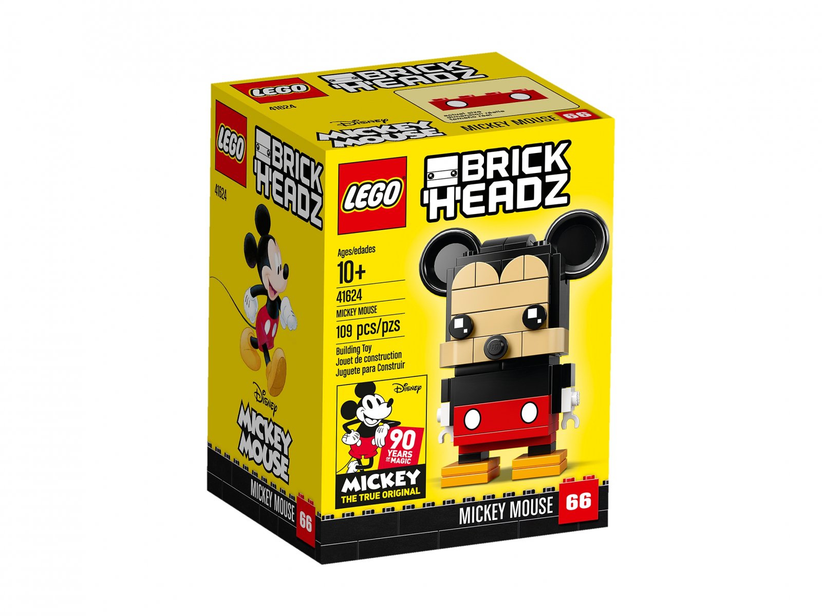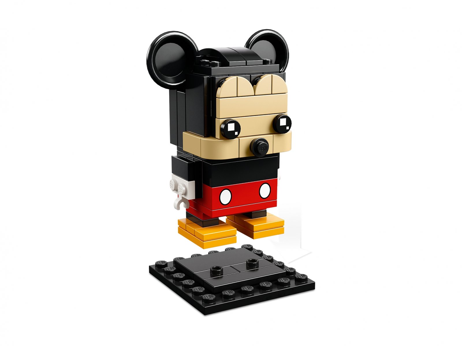 - Figurka Myszki Miki do zbudowania z serii LEGO® BrickHeadz™ ma dekorowane oczy i kultowe detale tej postaci z kreskówek, takie jak duże, czarne uszy, czerwone spodenki i ogonek.