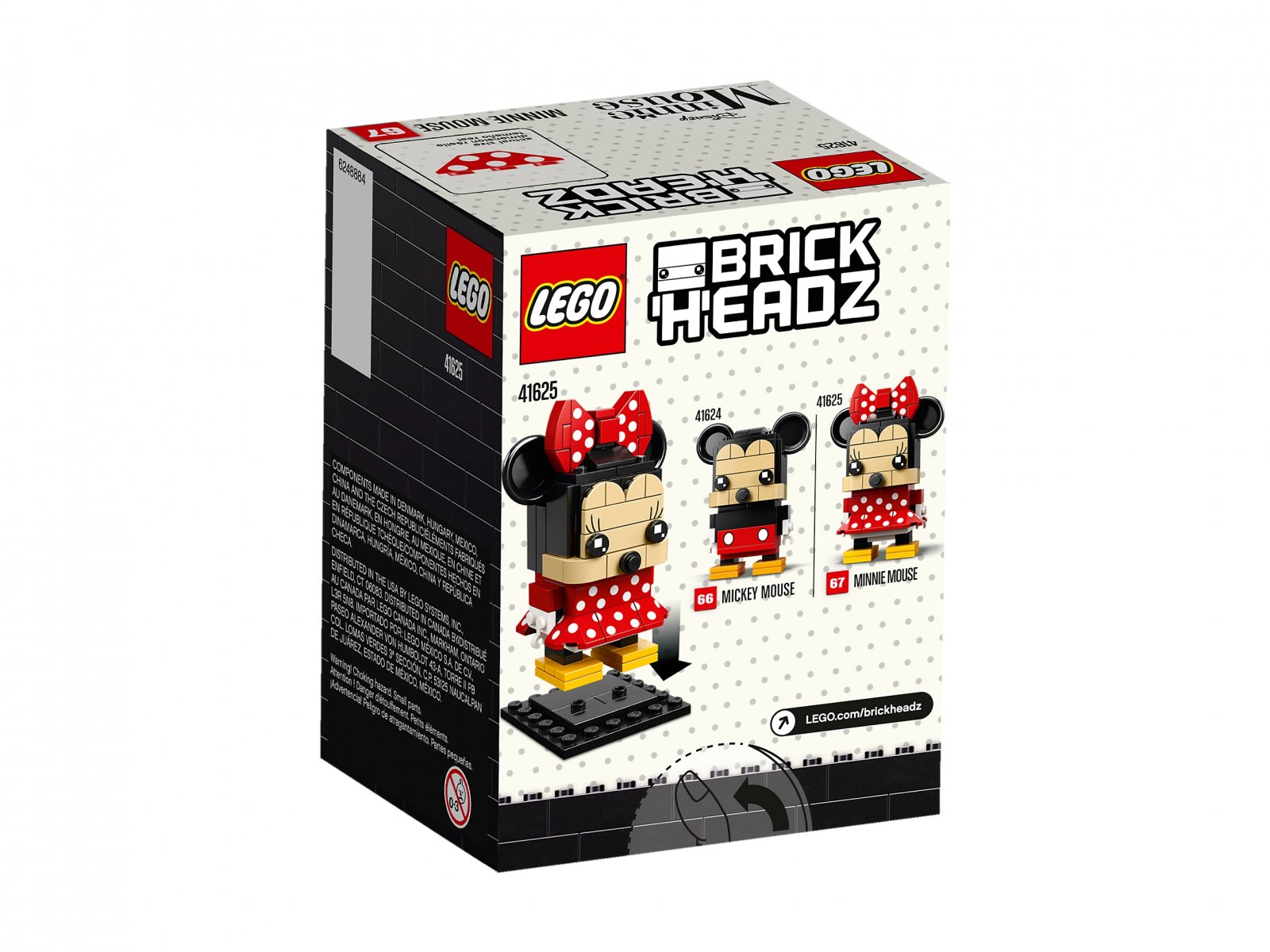 - Figurka Myszki Minnie do zbudowania z serii LEGO® BrickHeadz™ ma dekorowane oczy i kultowe detale tej postaci z kreskówek, takie jak duże, czarne uszy oraz czerwono-biała sukienka w grochy z kokardką.