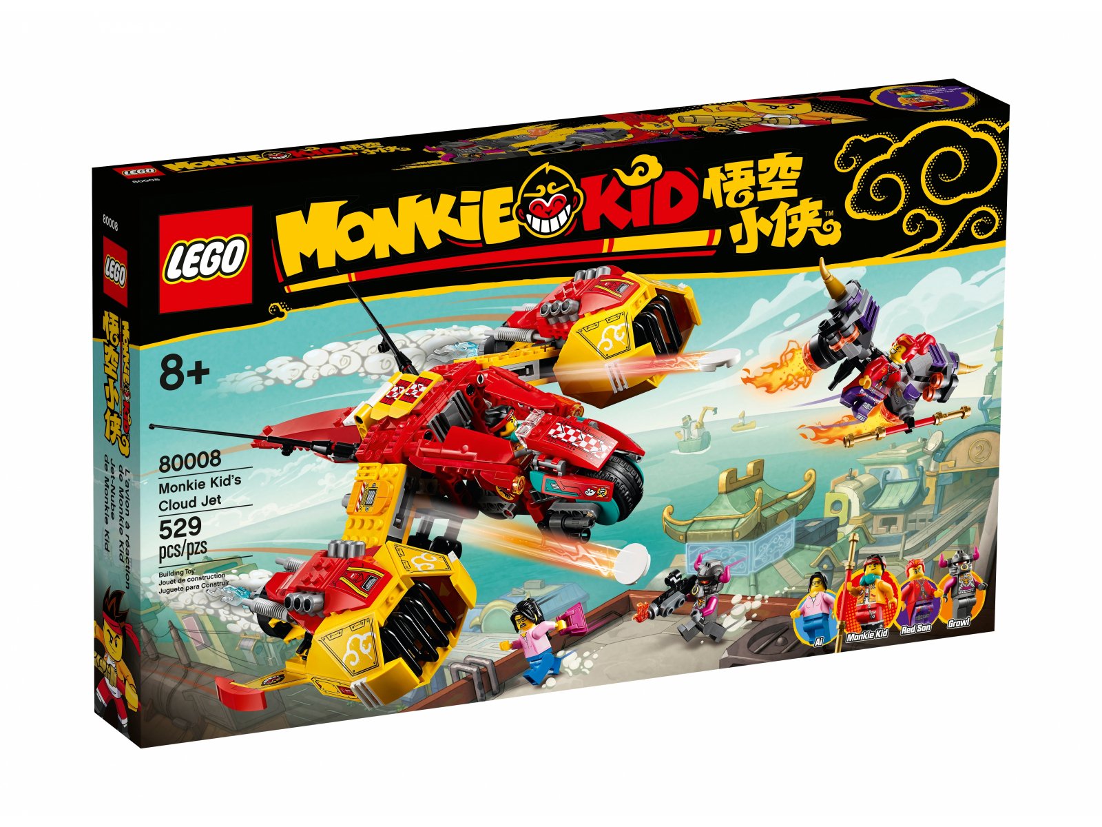 - Pozwól swojemu małemu bohaterowi stanąć do walki o Złoty Kostur i uratować Ai przed Red Sonem oraz Byczymi Klonami! To wszystko czeka w zestawie Odrzutowiec Monkie Kida (80008), który pozwala zbudować samolot z funkcją wypuszczania motocykla.