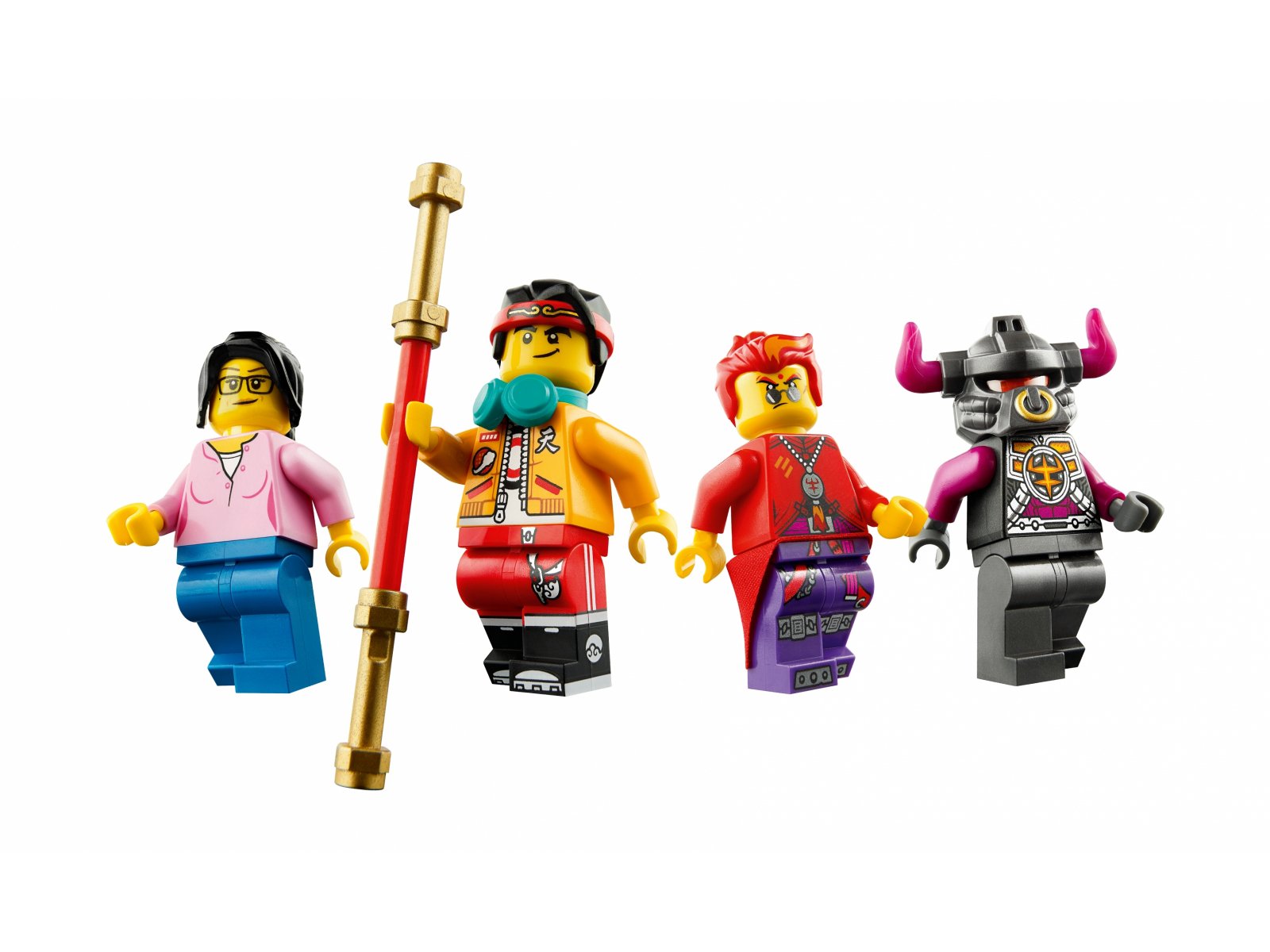 - W zestawie są cztery minifigurki — Monkie Kid ze Złotym Kosturem, Red Son z Rękawicą Mocy i podwójnym plecakiem odrzutowym do zbudowania, Growl oraz Ai. Dzieci będą mieć fantastyczną rozrywkę, odgrywając samodzielnie wymyślone przygody z ich udziałem!